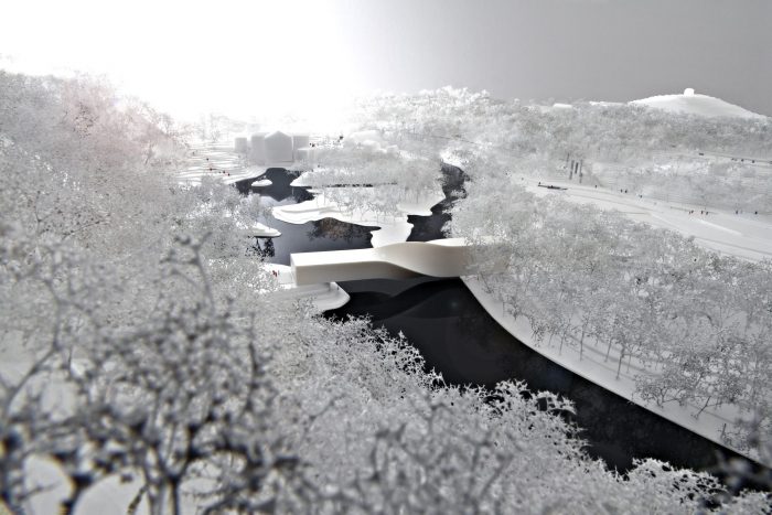 Twisted Museum of Bjarke Ingels Group is situated on the River Randselva, one hour north of Oslo. As the structure occupies both embankments of the waterway, it is built around an old bridge, serving as the only crossing, which is also located around a historic paper mill. AKT ll, Max Fordham, Davis Langdon and GCAM collaborated with BIG to design the 1,400 square meter structure which is scheduled to start construction in 2016.
