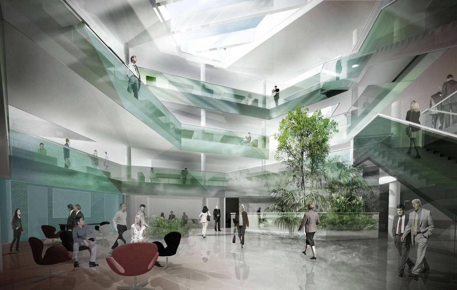 The three small atriums contribute to the internal transparency by creating additional visual connections across the floors. Their distinctive spatiality can also be used to mark spots with specialized functions, e.g. break rooms, informal meetings etc. Energy The building is designed in order to consume a minimal amount of energy for ventilation, lighting, heating and cooling and to maintain the best possible indoor climate at the same time. The design is optimized through an Integrated Energy Design process, where energy and indoor climate constituted integrated design parameters from the project’s very beginning, continuously interacting with architectural and materials choices.