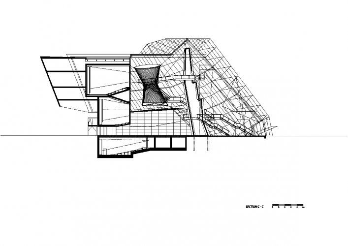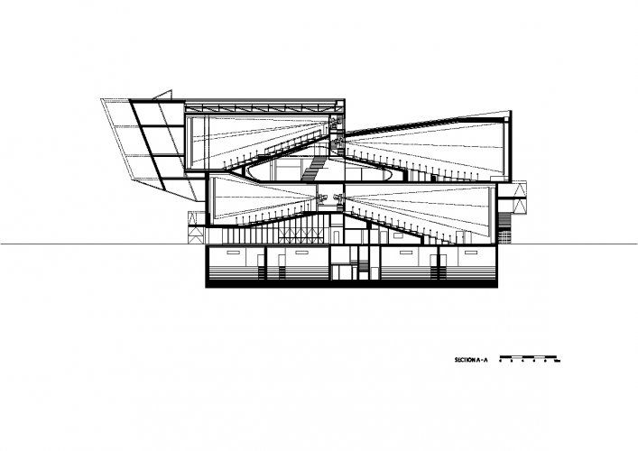 In this way, the content of the building becomes visible to the city as much as the city is visible from the building. It is an inside-out building which sustains a dialogue with the city. The media event – projected from the interior towards the exterior – assists in the creation of urban space.