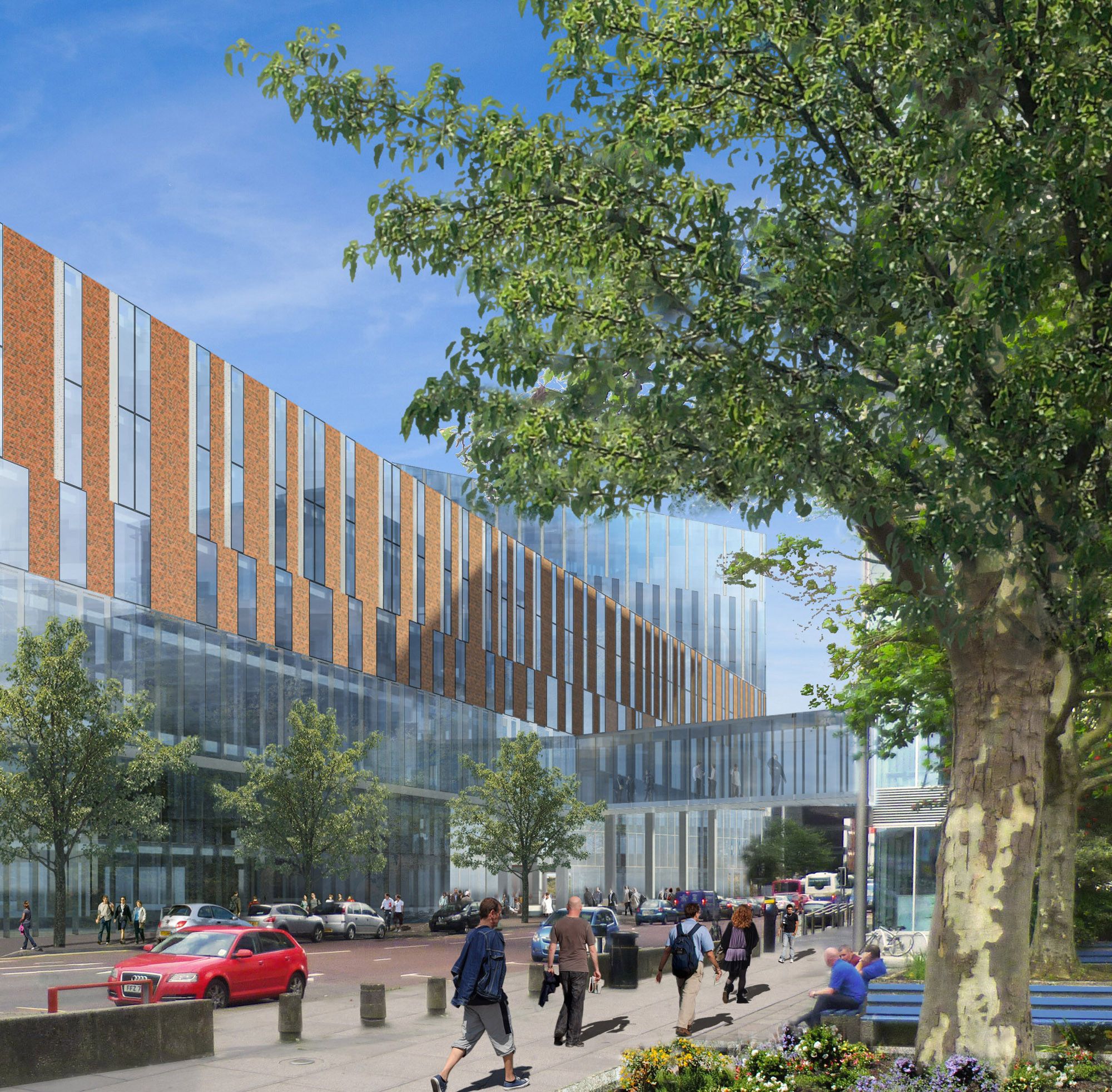 The project is being designed to attain a rating of BREEAM Excellent. Our plans feature large north-facing atria ushering light deep into the plan of the building, avoiding glare and reducing lighting loads. A high-performance façade will reduce energy consumption, supported by a large photovoltaic array on the roof of the three new blocks. The green and brown roof is being designed to improve the ecological value of the site and provide a visual focus for occupants of the campus and the wider city.