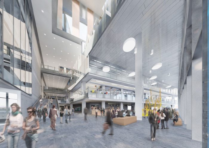 The new university will stitch into the historic fabric of the city to combine social, retail and flexible learning spaces around new and enhanced streets and squares. The University’s six faculties will be positioned one next to another to spark creative debate and innovation between disciplines. Associated corporate and teaching facilities will include classrooms, lecture theaters, specialist labs and workshops, academic and departmental space, a library, student hubs and support services, and catering facilities. The lower floors will be open to the public.