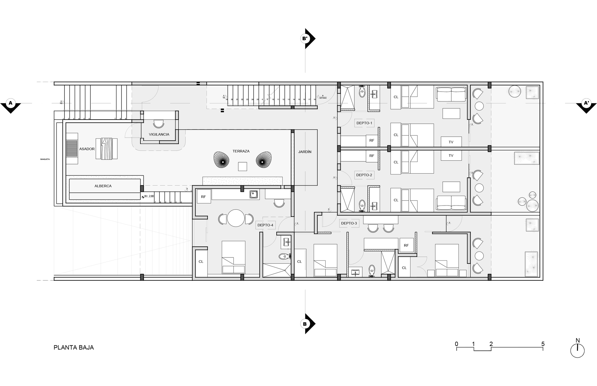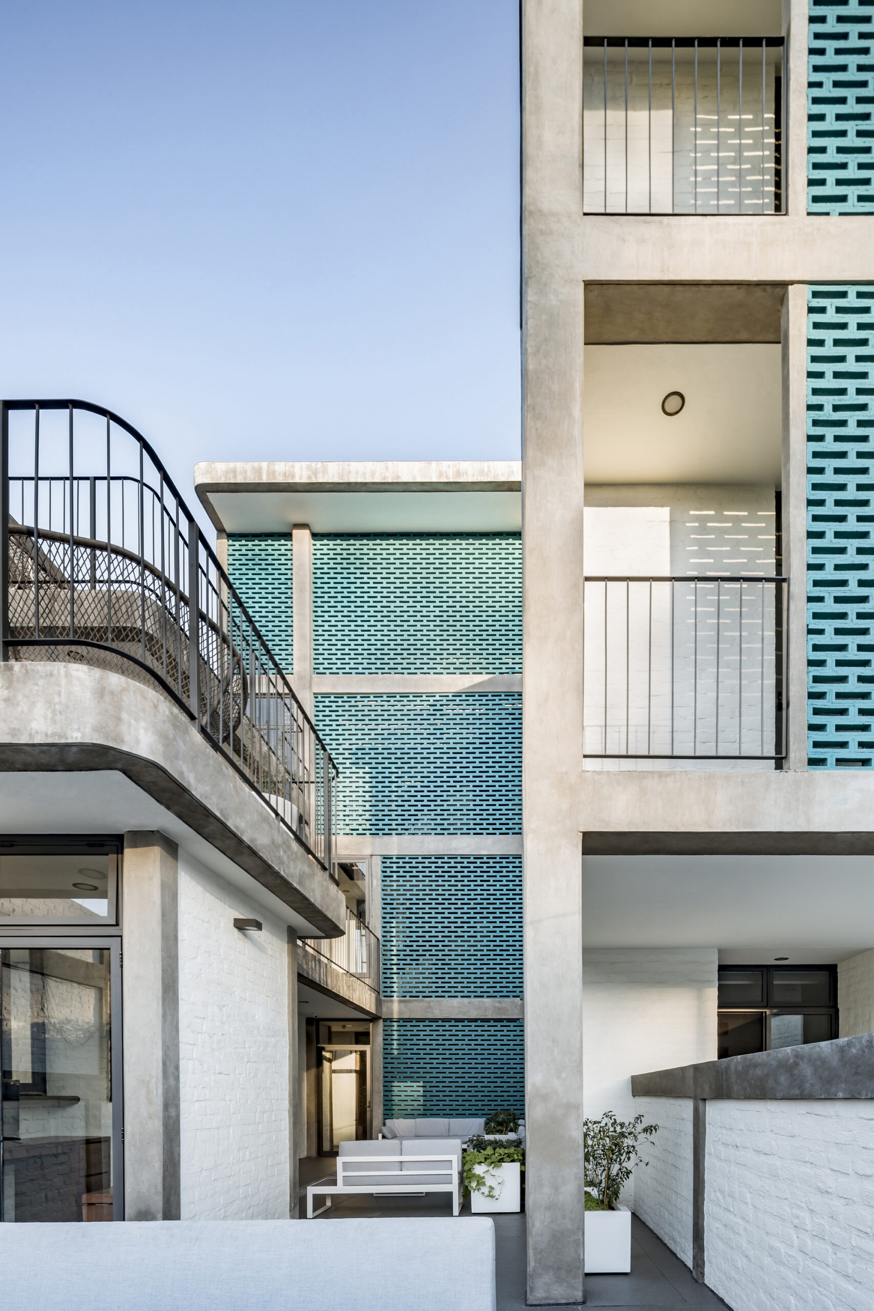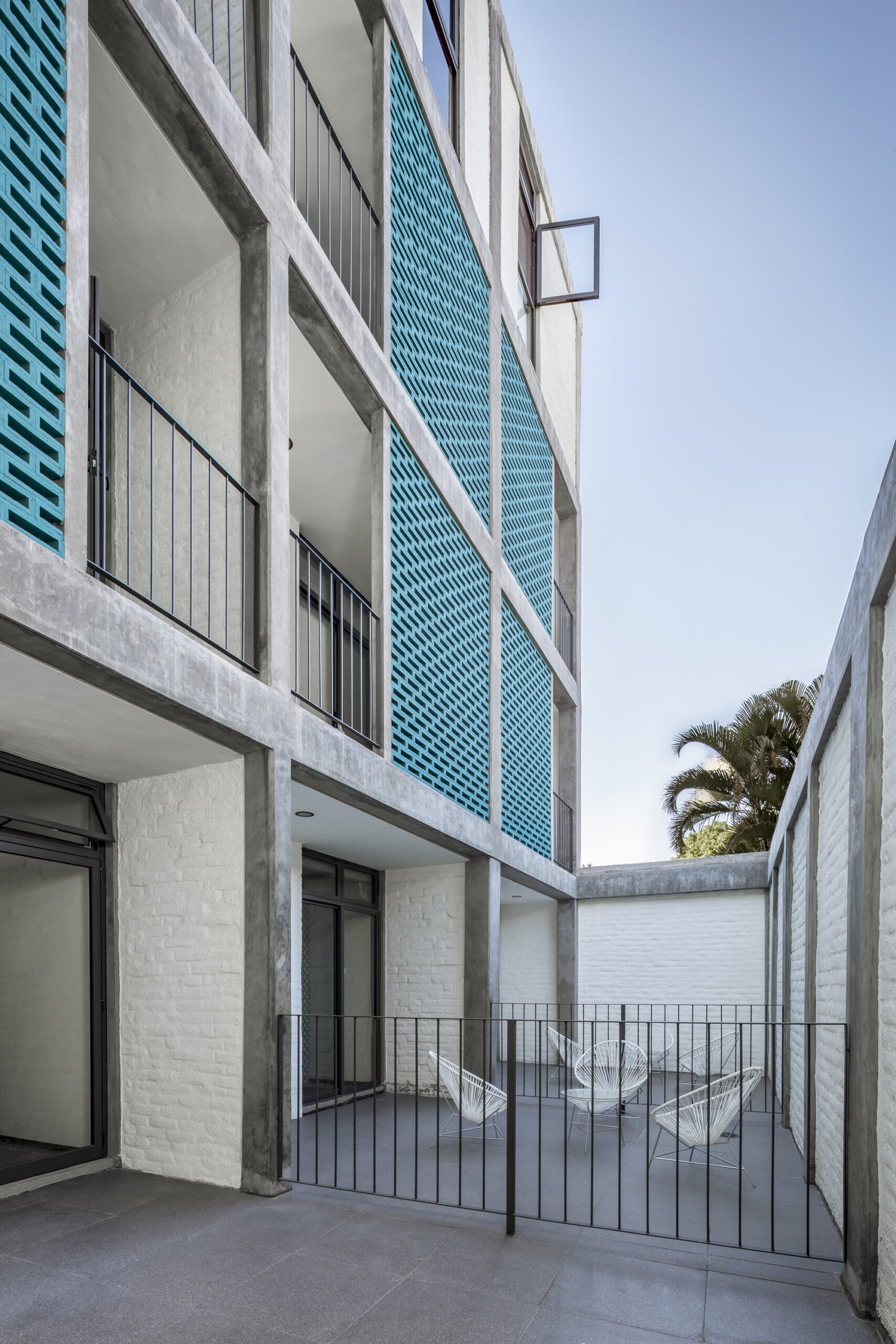 Each of the rooms has a place to eat, rest, sleep and wash, as well as a series of balconies that serve as the border between the living space and the lattice membrane that faces the outside. This allows for spatial unfolding and natural thermal isolation. All this causes a greater comfort inside due to the crossed ventilation offered by the design.