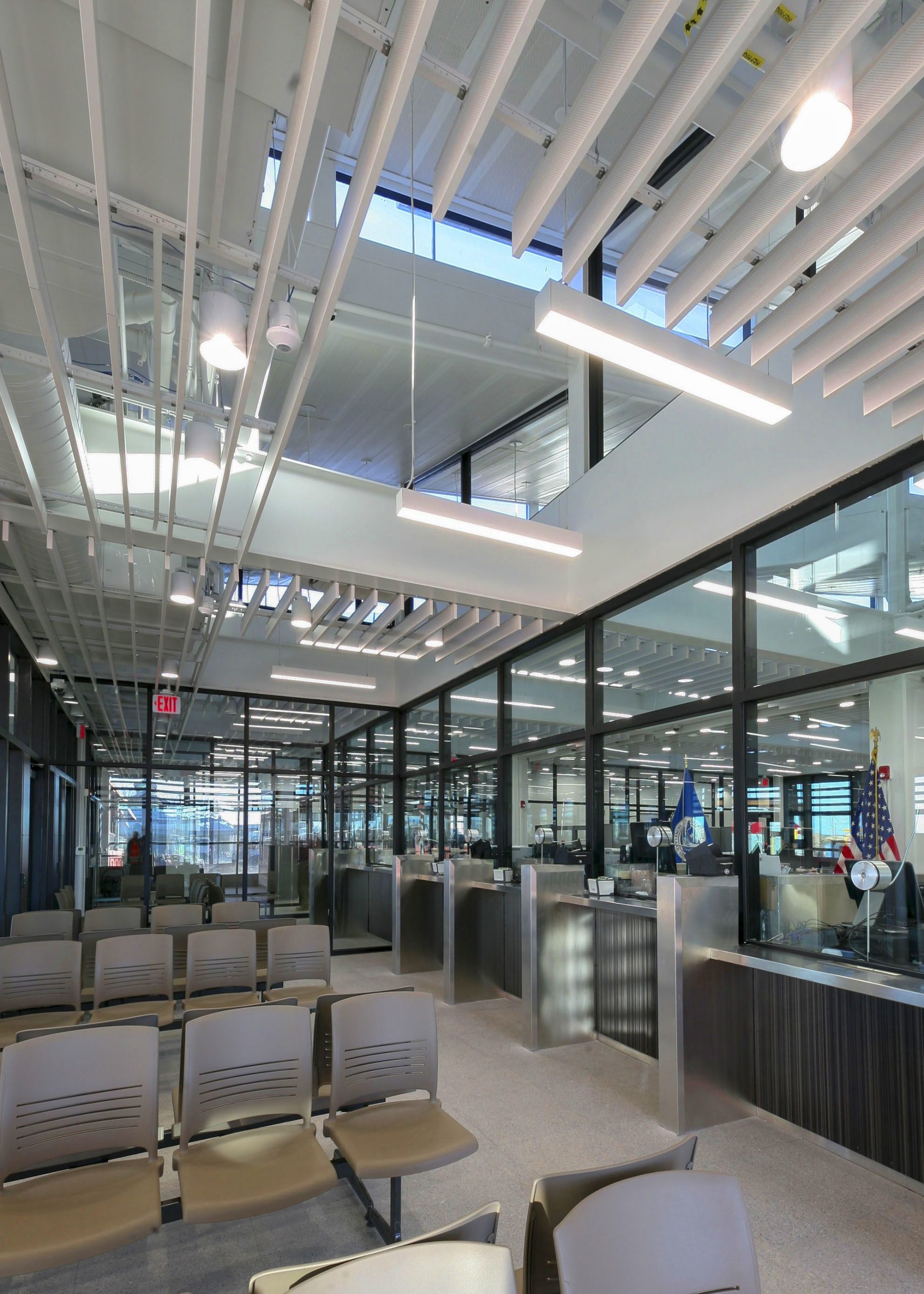 The design process embraced the myriad technical, operational, performance, human and environmental challenges that are endemic to any port of entry, particularly one at a location of extraordinary natural beauty and resource. An integrated design strategy front-loaded technology, research, and detail solutions allowing technical disciplines and performance-based details to be knitted into the visible architectural fabric – creating both a physical and intellectual transparency.