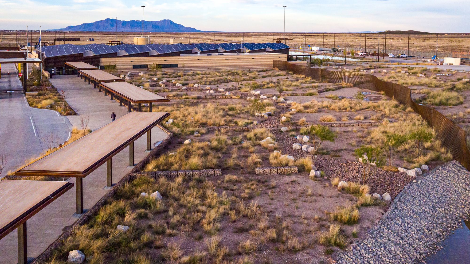 While providing safe, efficient, and expanded international entry processing for people and goods, this new port of entry design welcomes travelers to America with architecture that inspires and conveys our country’s better virtues – architecture that serves and respects all people, embraces culture, conserves resources, nurtures ecology, protects habitat, celebrates diversity and conveys a love of the land.