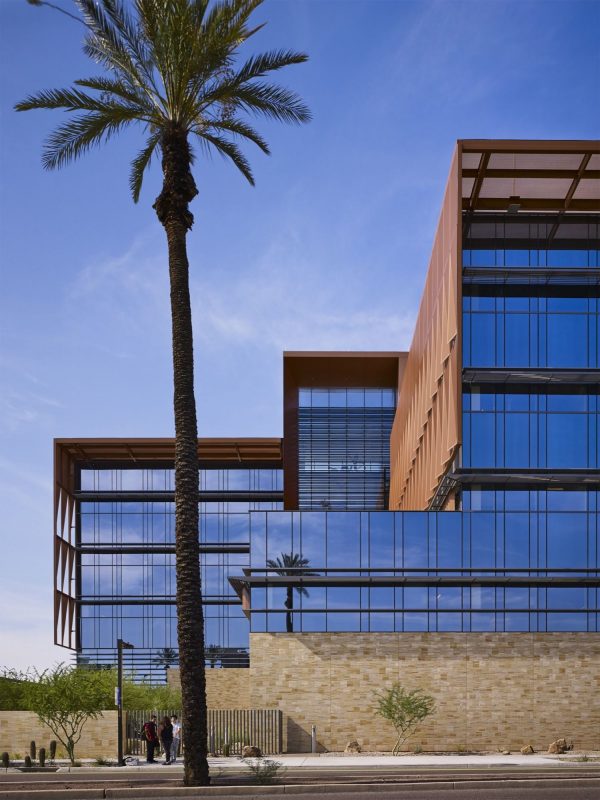 A healing garden is located in the Arizona cancer center adjacent to the main entrance of the building and visible from the main lobby. The two organizations are working together to recruit cancer specialists, as well as cancer researchers to support clinical trials. As part of the partnership, all inpatient cancer care is being handled at St. Joseph’s Hospital and Medical Center, and the outpatient treatments are offered at the new cancer facility. The project is registered with the certification goal of LEED Gold®.