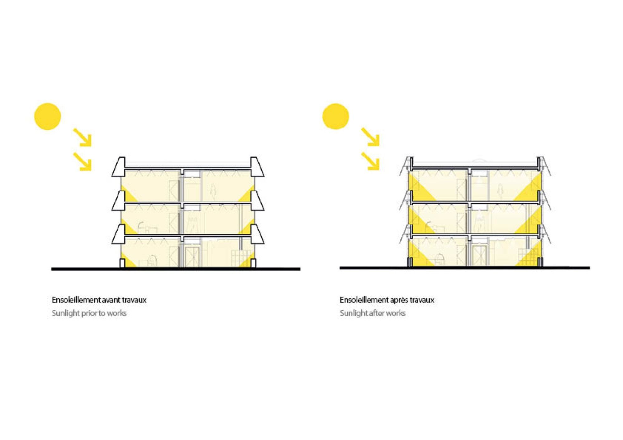 The existing architecture is strongly marked by the horizontal bands of timber support frames covered with flammé red terracotta flat tiles. They provide protection from the sun and natural shade in the internal spaces which suffer from a lack of natural daylighting. To make up for this deficit and to improve the penetration of daylight, the extension’s new façades meet the aim of reinterpreting the existing architecture, while improving it and modernising its image.