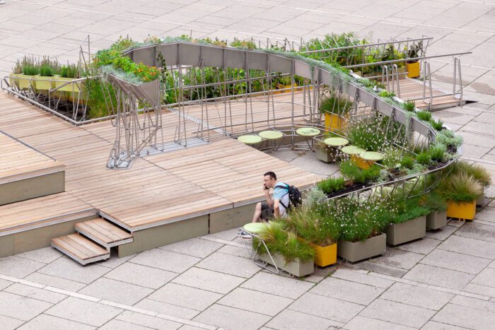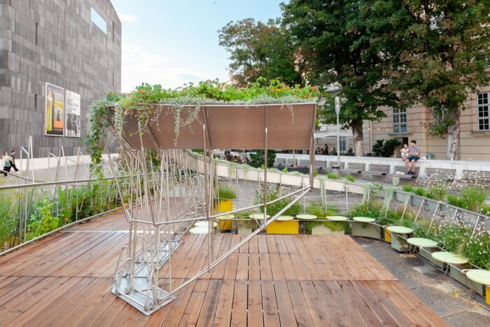 Urban Green Island, The Summerstage, located in Vienna’s Museum Quarter, redefines public space as an evolving platform that adapts to both social and climatic conditions. More than just a stage for performances, it is an inclusive urban island, transforming a previously overlooked transit zone into a welcoming and versatile environment. It serves as a resting place for the homeless, a vibrant gathering spot for diverse communities, and a stage for events ranging from Pride performances and DJ sets to philosophical discussions and literary readings. By fostering coexistence, it challenges conventional urban design, encouraging shared experiences across different social groups.