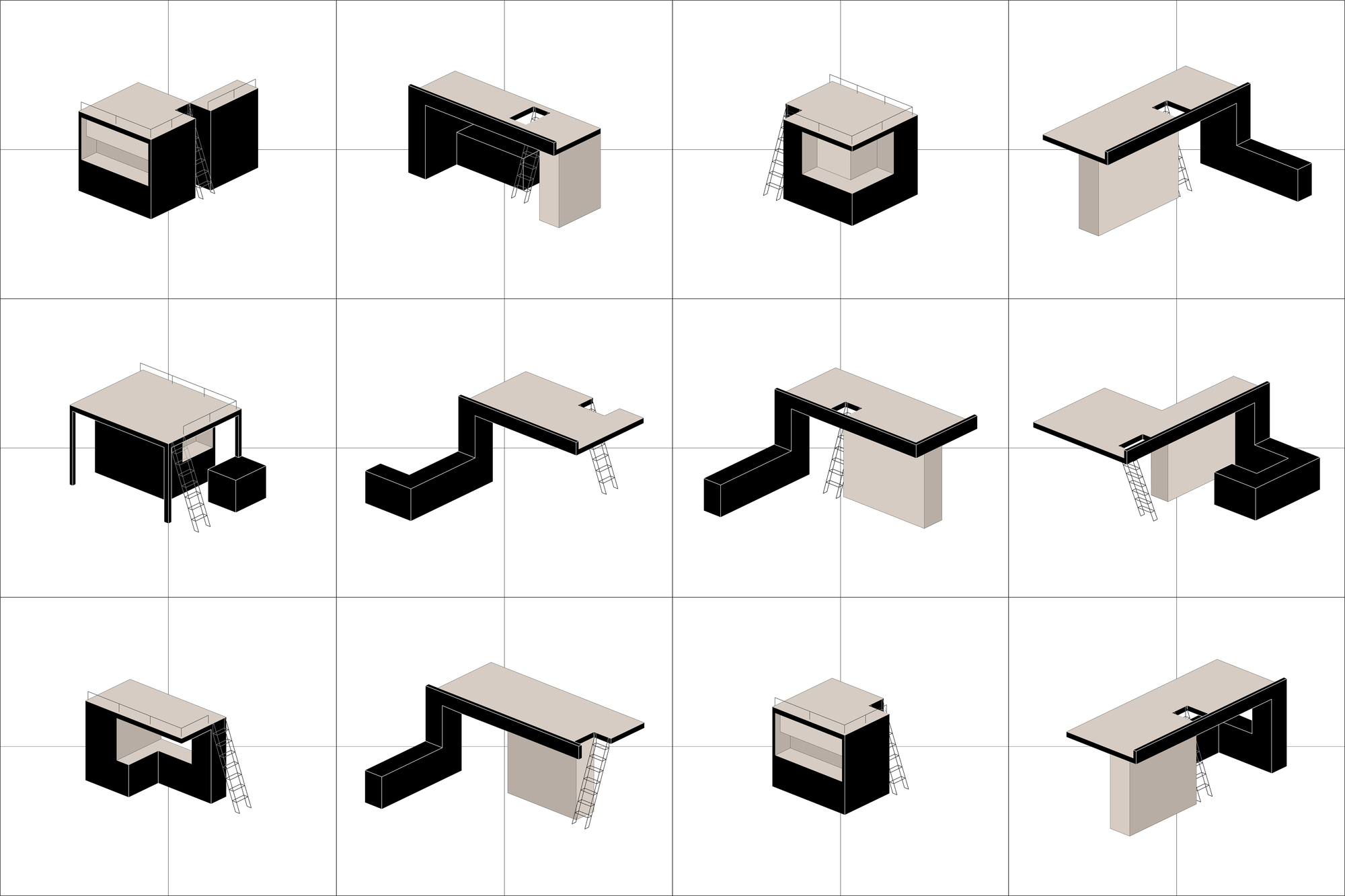 Focus of the main design concept for the interior of the lofts is the introduction of a 3D interior object containing a kitchen, a bathroom, storage space and a mezzanine with a double bed. The quality of the raw concrete structure of the existing building contrasts with the refined wooden interior objects. The co-existence of these different materials and textures captures the past and the present into a harmonic design which is both industrial and luxurious.
