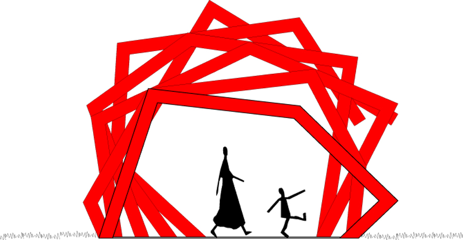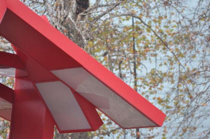 With a bright and contrasting color, the sculpture is an open, clear and structurally dynamic form that explores the possibility of motion in the environment, while this movement itself is present as a natural environmental process. In a somewhat Calderian approach, the idea represents the blooming of a frame through five different phases. With its form, this dynamic sculpture stimulates the interest of pedestrians and invites them to pass through.