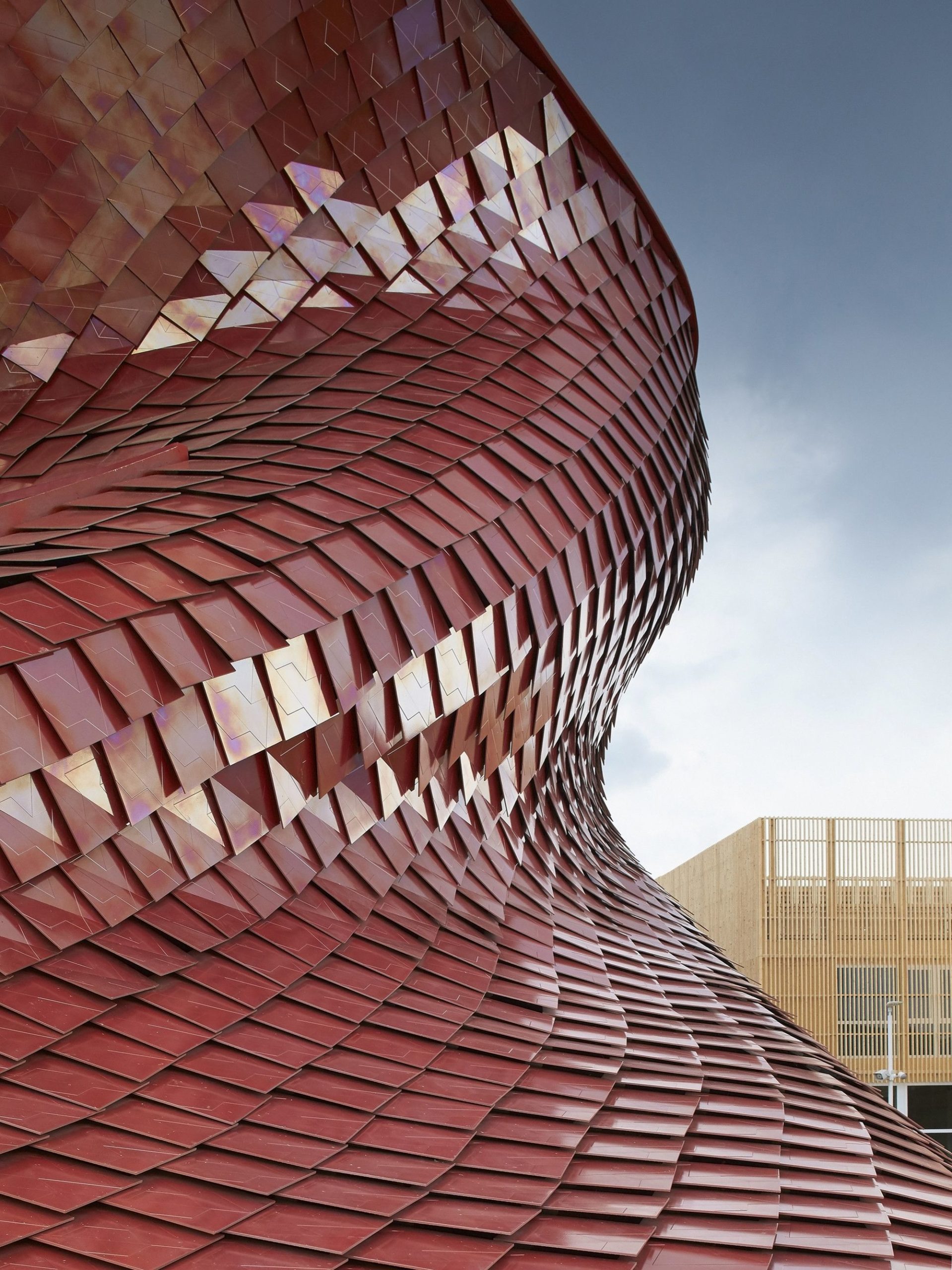 Daniel Libeskind’s pavillion for the Milan expo of 2015 is well underway, with its construction nearing completion. One could characterize it by its sinuous, plastic shape, and its scale-like façade. The vanke pavilion will serve as the chinese pavilion on the expo, and naturally, it’s rowdy visual presence follows from that.