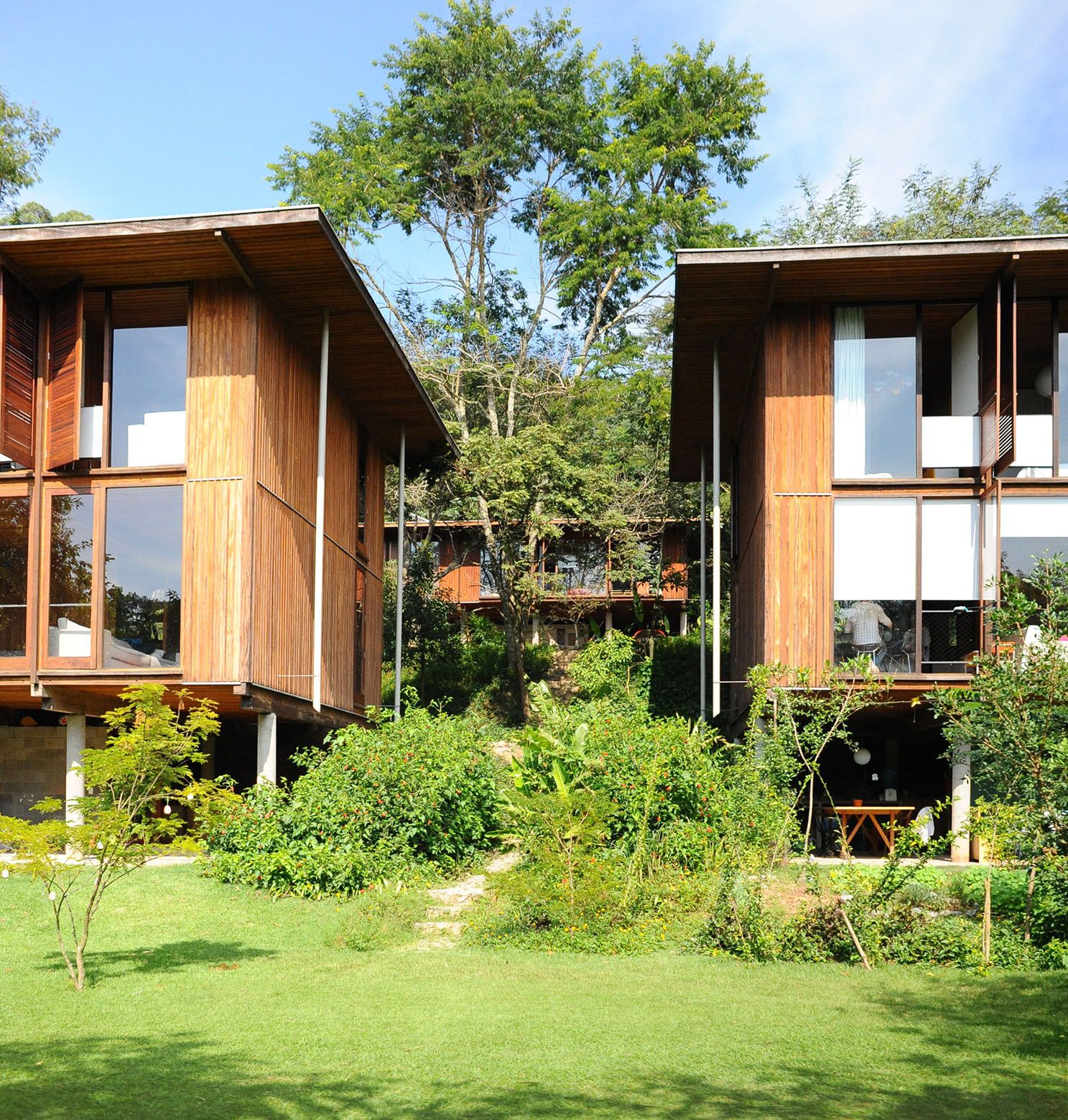 Vila Taguai designed by Cristina Xavier Arquitetura, The residential project comprising eight wooden houses at Vila Taguaí, located 22 km from the centre of São Paulo, is a property development that was conceived as an innovative alternative, building new living spaces amongst the greenery of the city’s suburbs.