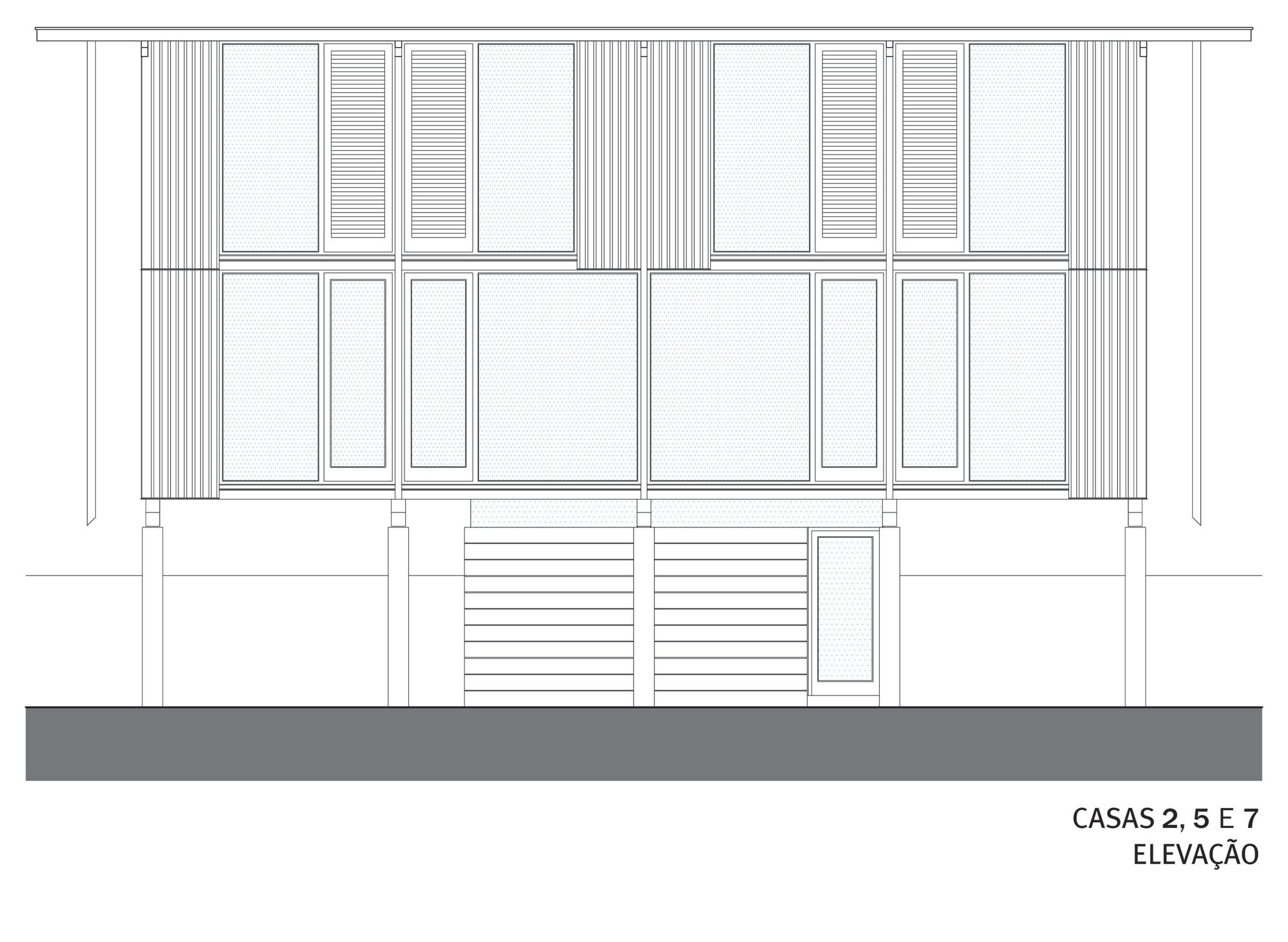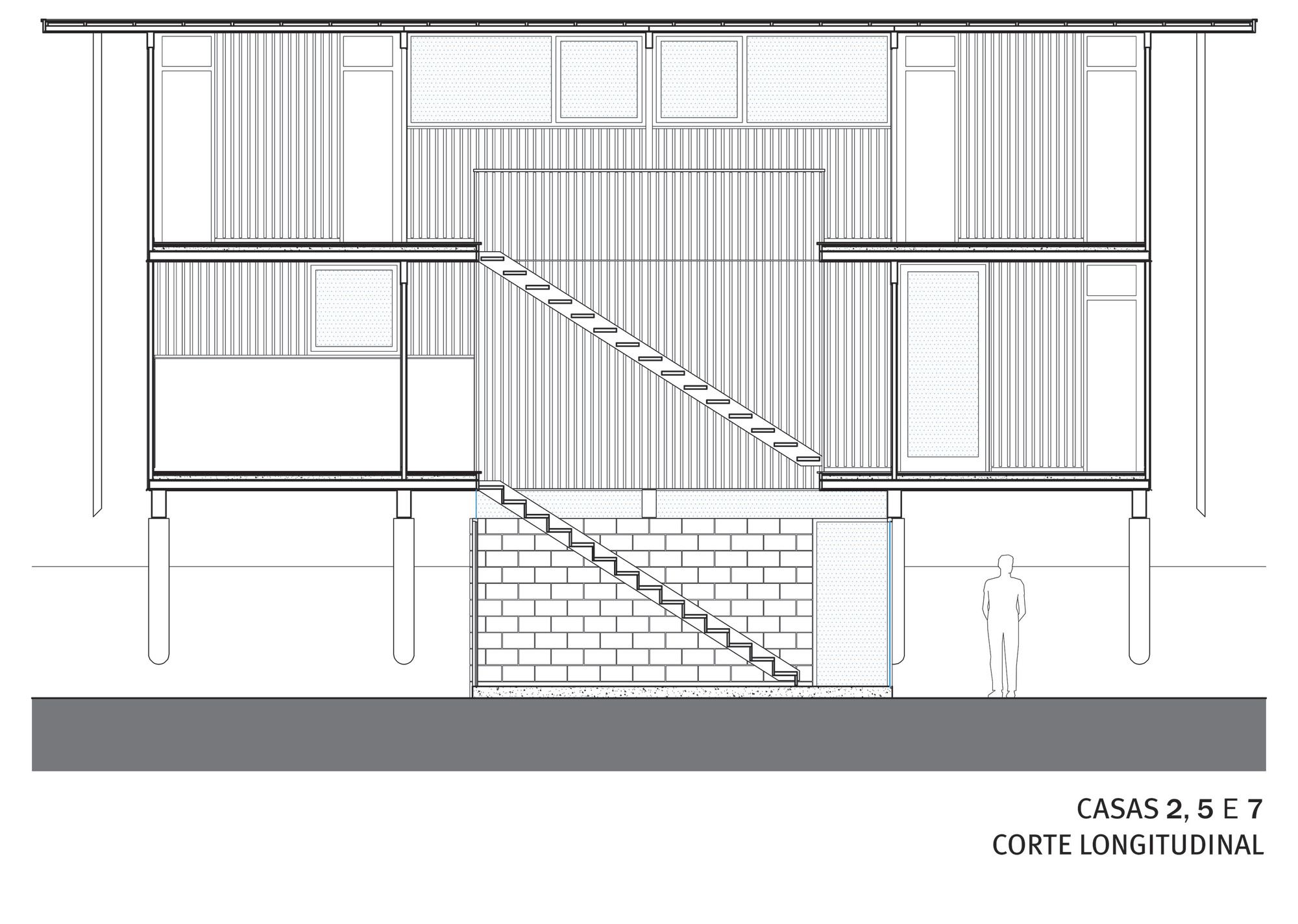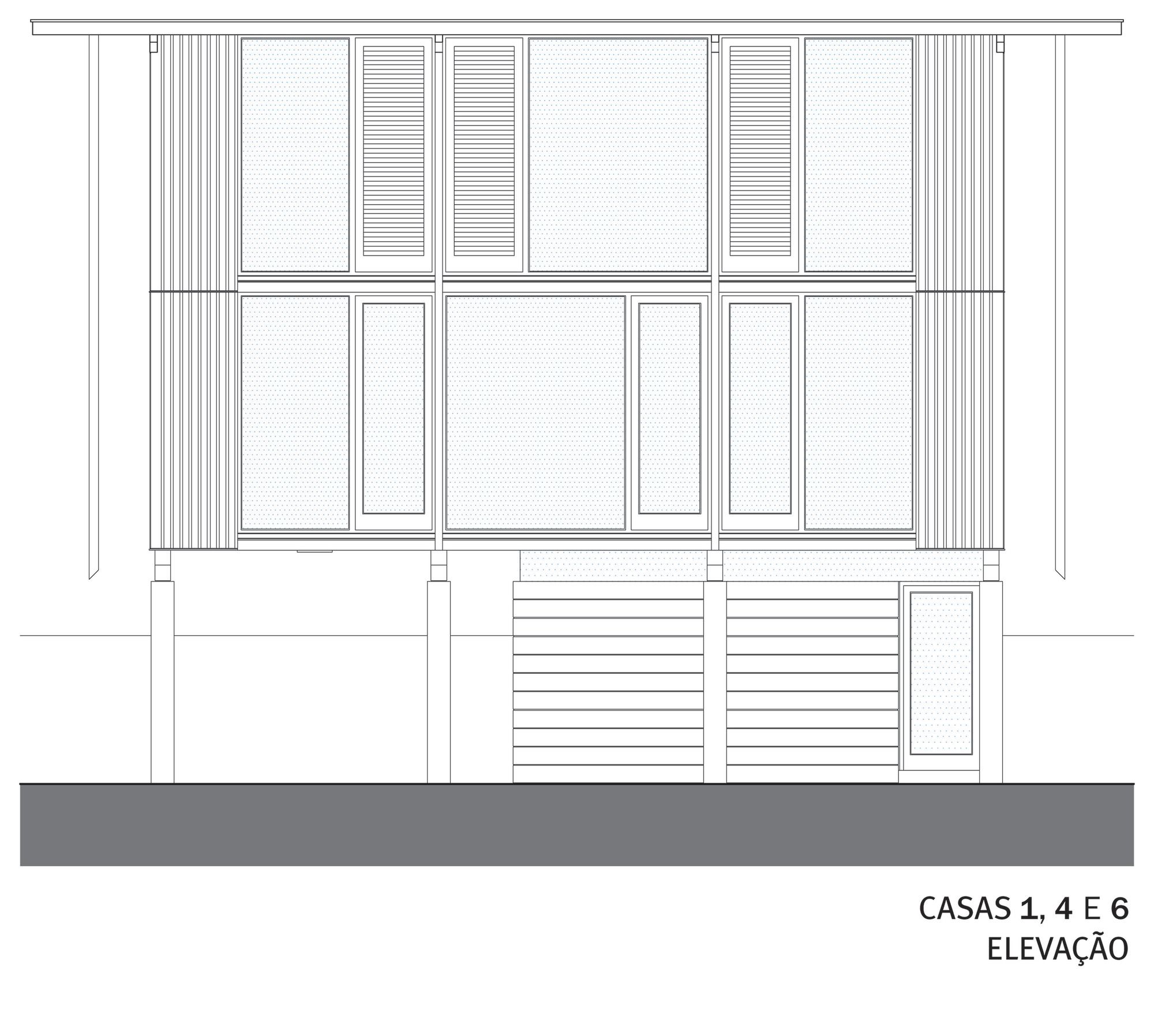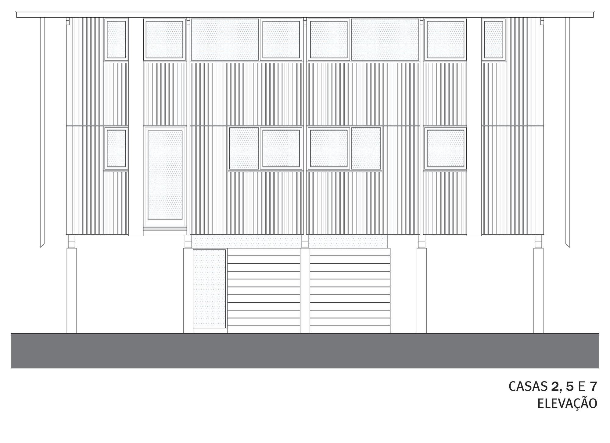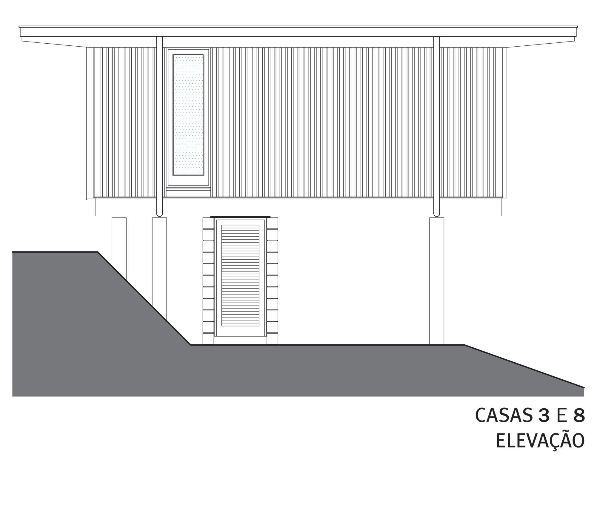 The site is placed among dense vegetation on an East facing, 35% slope and the implantation sought to maintain the natural terrain to the greatest extent possible. The eight houses are elevated off the ground, creating terrace gardens. The trees were preserved and new ones will be planted, reinforcing the native flora.