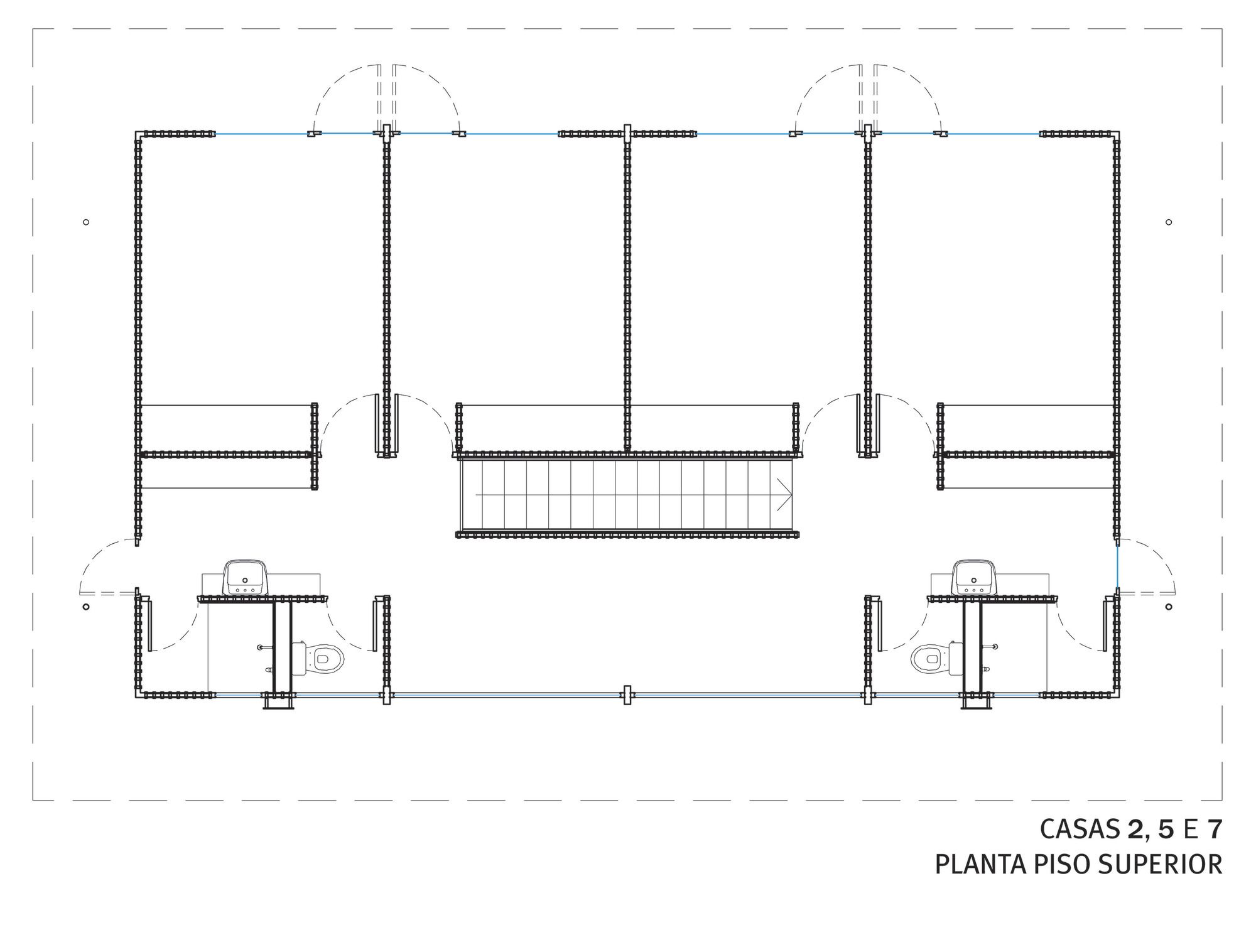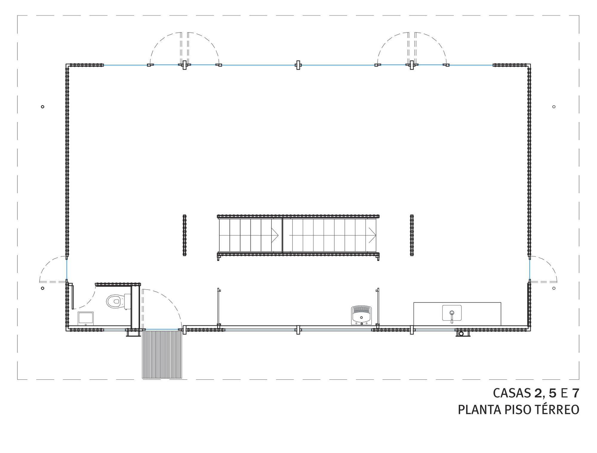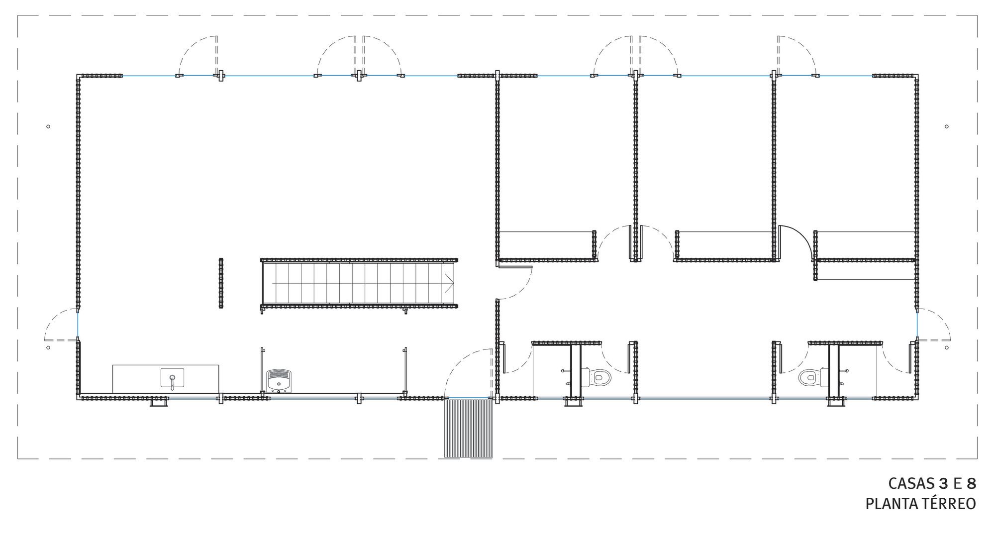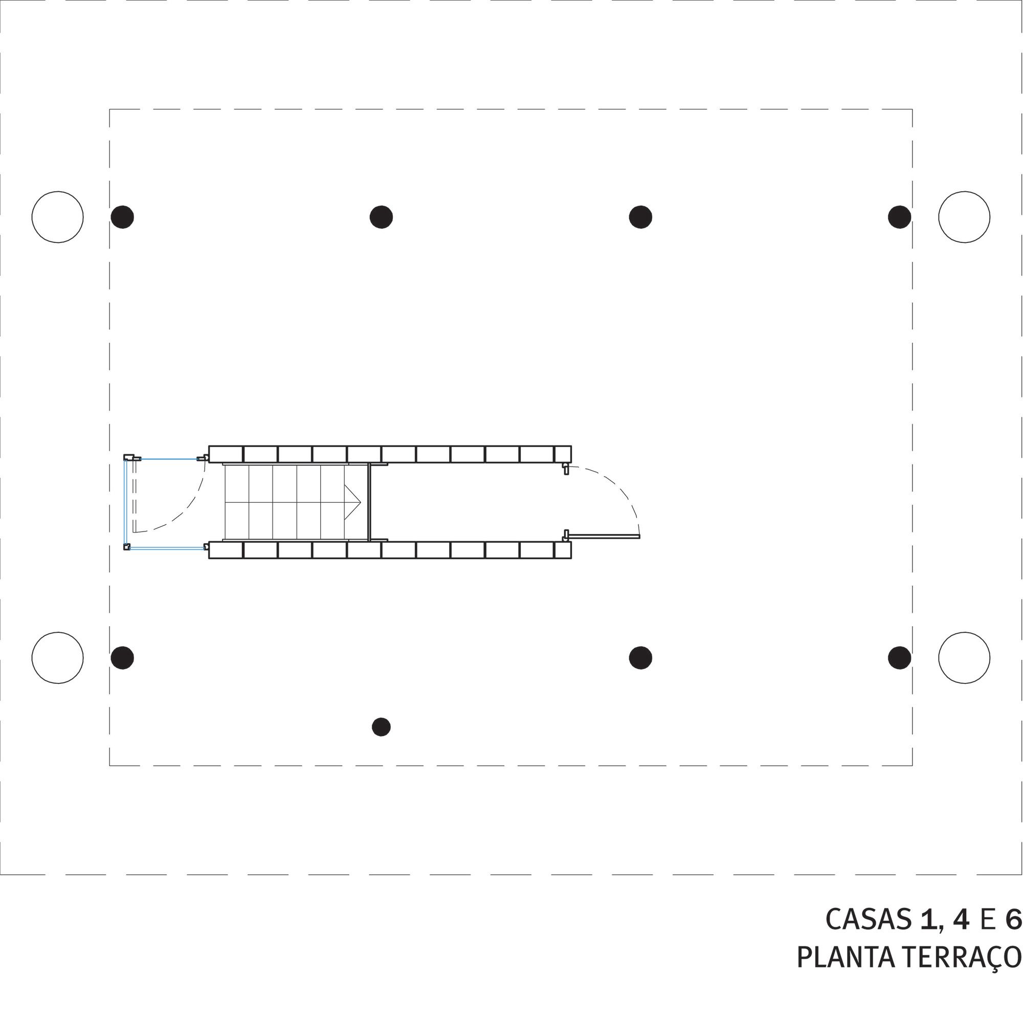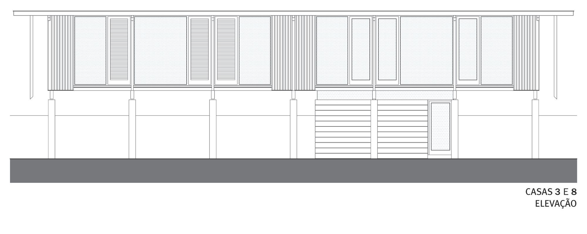 The site is placed among dense vegetation on an East facing, 35% slope and the implantation sought to maintain the natural terrain to the greatest extent possible. The eight houses are elevated off the ground, creating terrace gardens. The trees were preserved and new ones will be planted, reinforcing the native flora.