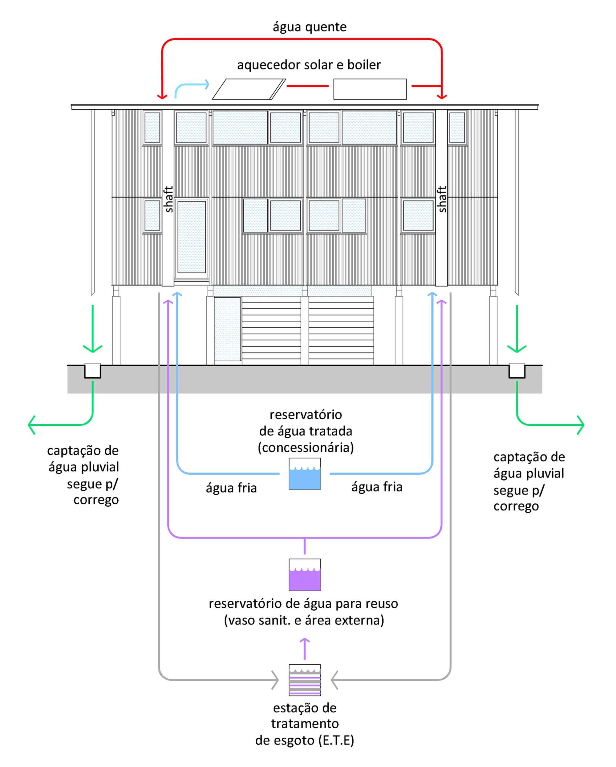 The buildings make the most of natural sunlight and ventilation and utilise solar energy for water heating. The area surrounding the project must be preserved – rainwater runoff is collected and directed to an existing stream. Sewage and wastewater are treated in a plant located within the condominium for subsequent use in toilets and irrigation.