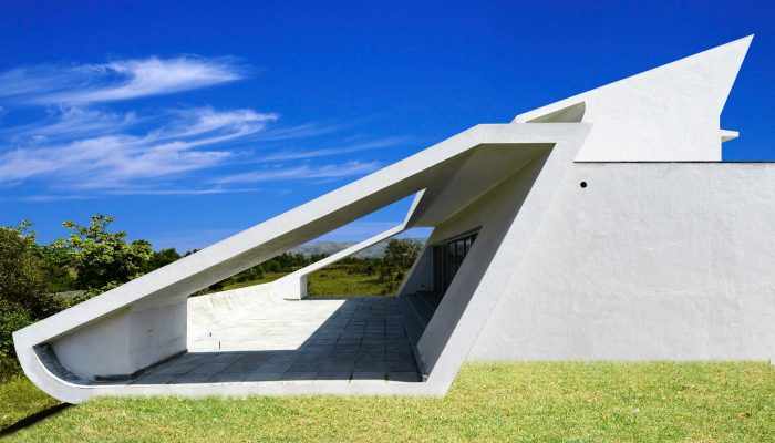 The program houses a Living, Dining, Kitchen, Sleep facilities with ancillary services primarily for a weekend getaway. The open to sky spaces such as “decks”, “terraces” and “balconies” are used for passive recreation and form the primary architectural program of the project. The architectural main frame is “pinched” at zero point facing north and zooms outward towards the southern hemisphere. The “Deck” emerges from the “zer-point” condition to nest into the body of the programmatic components.