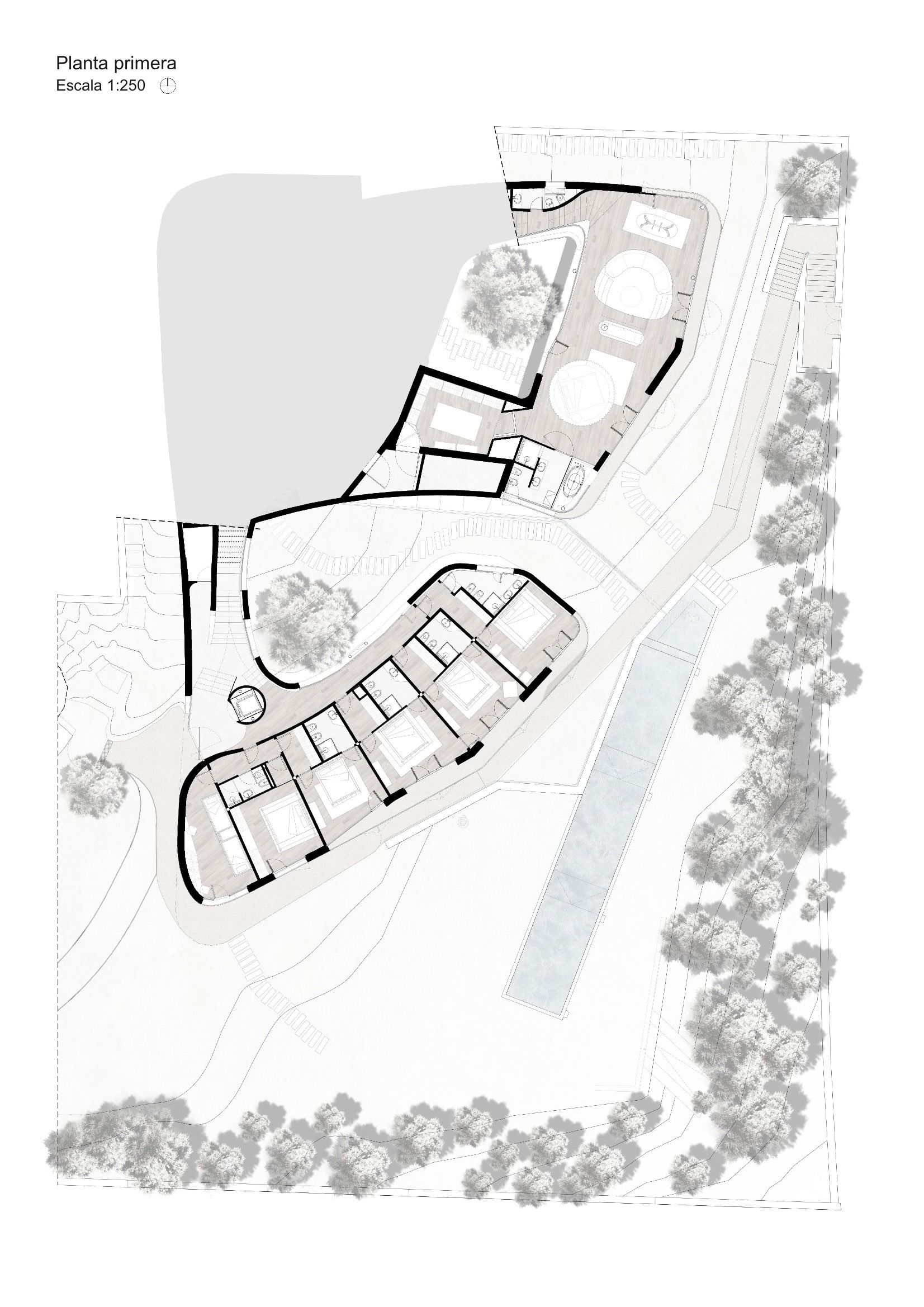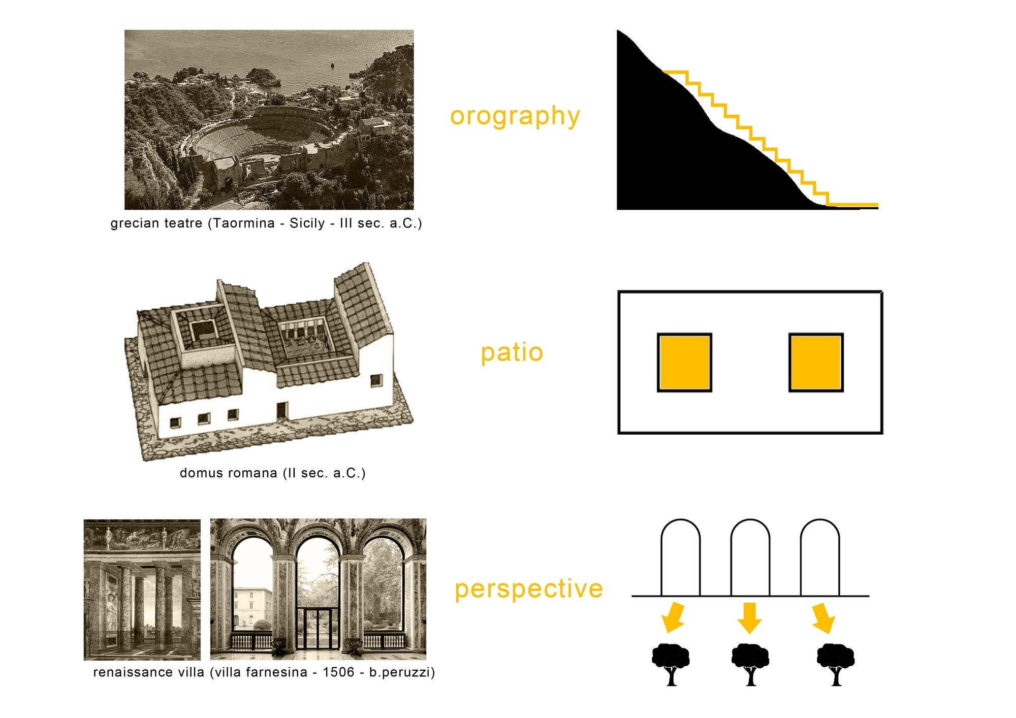 The main concept of the building is the fusion of the Mediterranean culture with the natural environment. Inspired by the roman villa and by Spanish and Arab heritage, the house takes form through the natural lexicon of Italian expressionism (Moretti, Michelucci etc.), which also maintains a strong memory of Rudolf Steiner. For Metro area, in fact, designing a contemporary building in 2016 means establishing a dedicated dialogue with history and with nature.