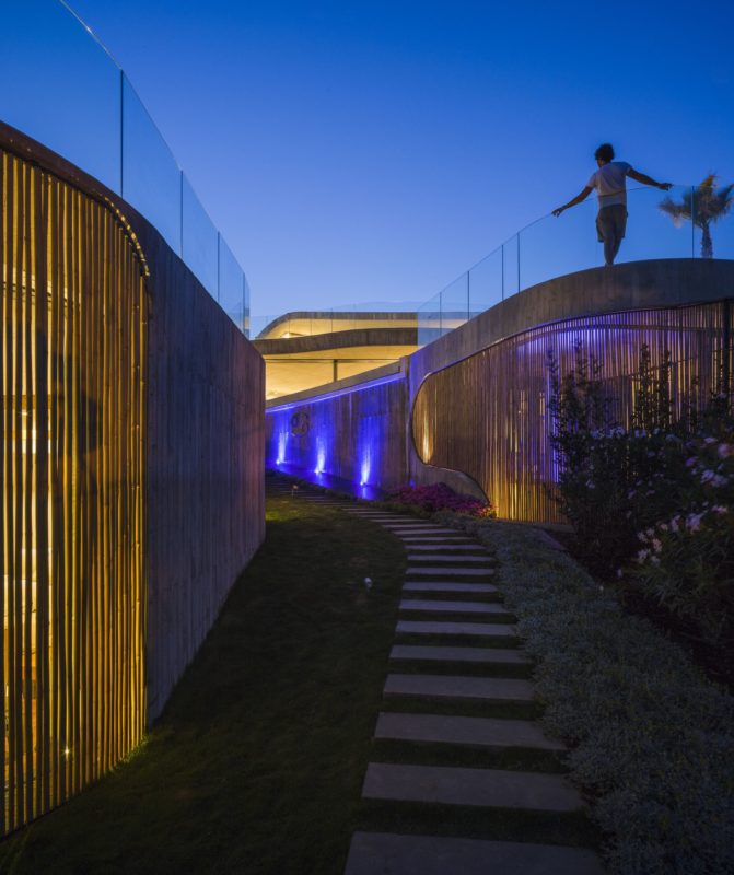 So, for example, the continuous inside-outside relationship obtained by the big glass windows is filtered by hanging gardens, canopies and custom made bamboo shutters, that are a reminiscence of the traditional awnings and latticework Moucharabieh.