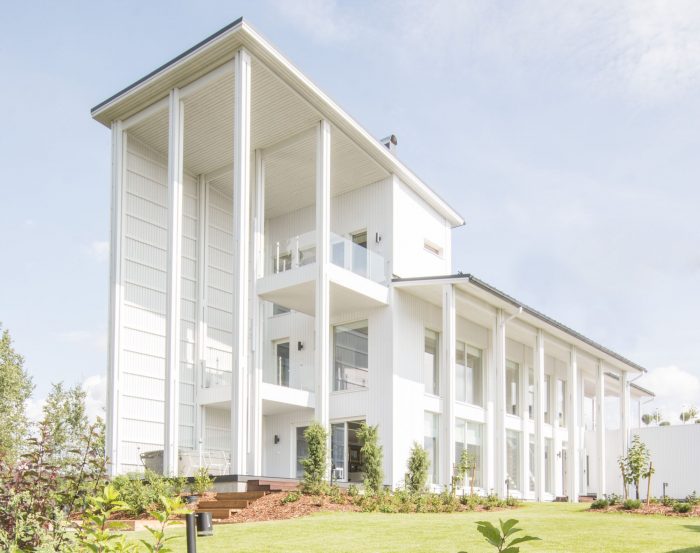 Villa Muurame is a wooden 3-story single-family home by Lake Jyväsjärvi in Jyväskylä, Finland. The spatial elements of the house (approx. 3m wide, 7.8 long and 3.1 high) were pre-fabricated during the winter in the Muurametalot housing factory in Karunki, Finnish Lapland, and the elements were erected in Jyväskylä after the snow had melted.