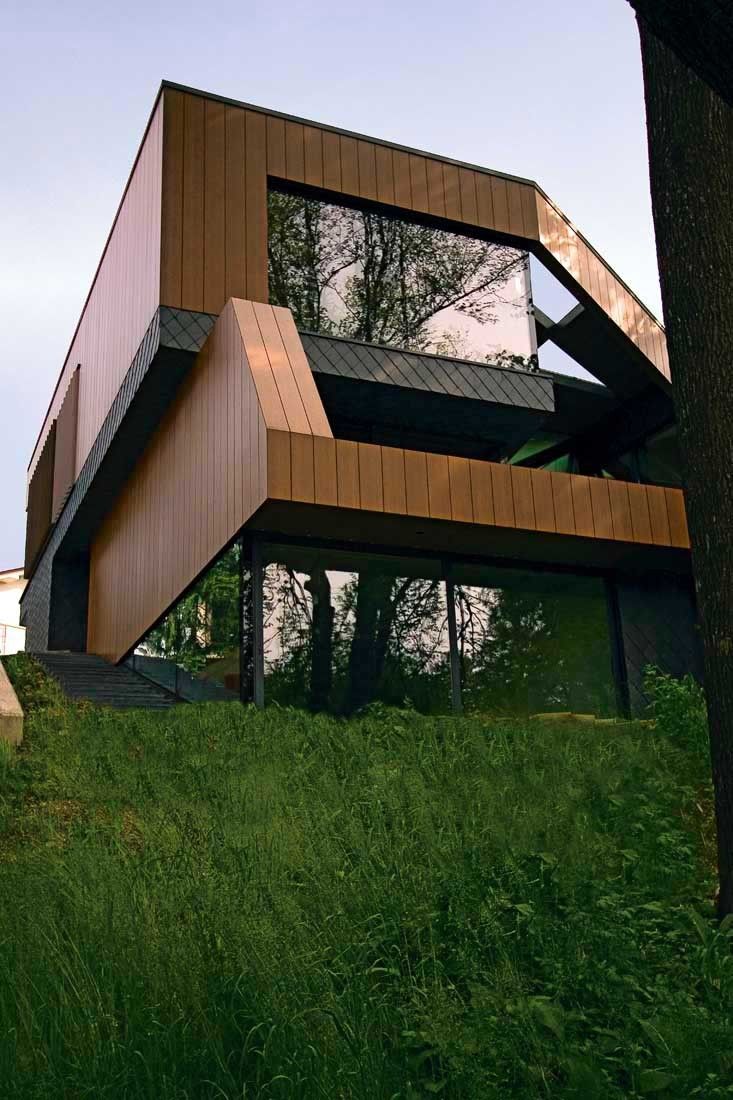 In Slovenia there are extreme climate conditions; with hot summer, when temperatures rise up to 35C and cold winter when they drop below –10C or more. In addition there is rain in spring and autumn. The client required an environmentally sustainable concept that would conserve energy and natural resources. Also he required an external space, that would be usable both, in sunny and in rainy days.