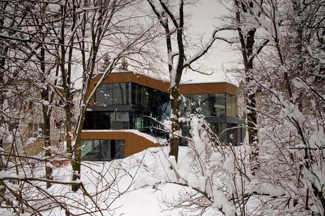 The house is a private residence positioned in the neighbourhood of 6 larger villas. The quality of the site is a beautiful view to the existing common park with oaks over 100 years old. Therefore the aim of the building was to open view from all main spaces of the house towards these trees.