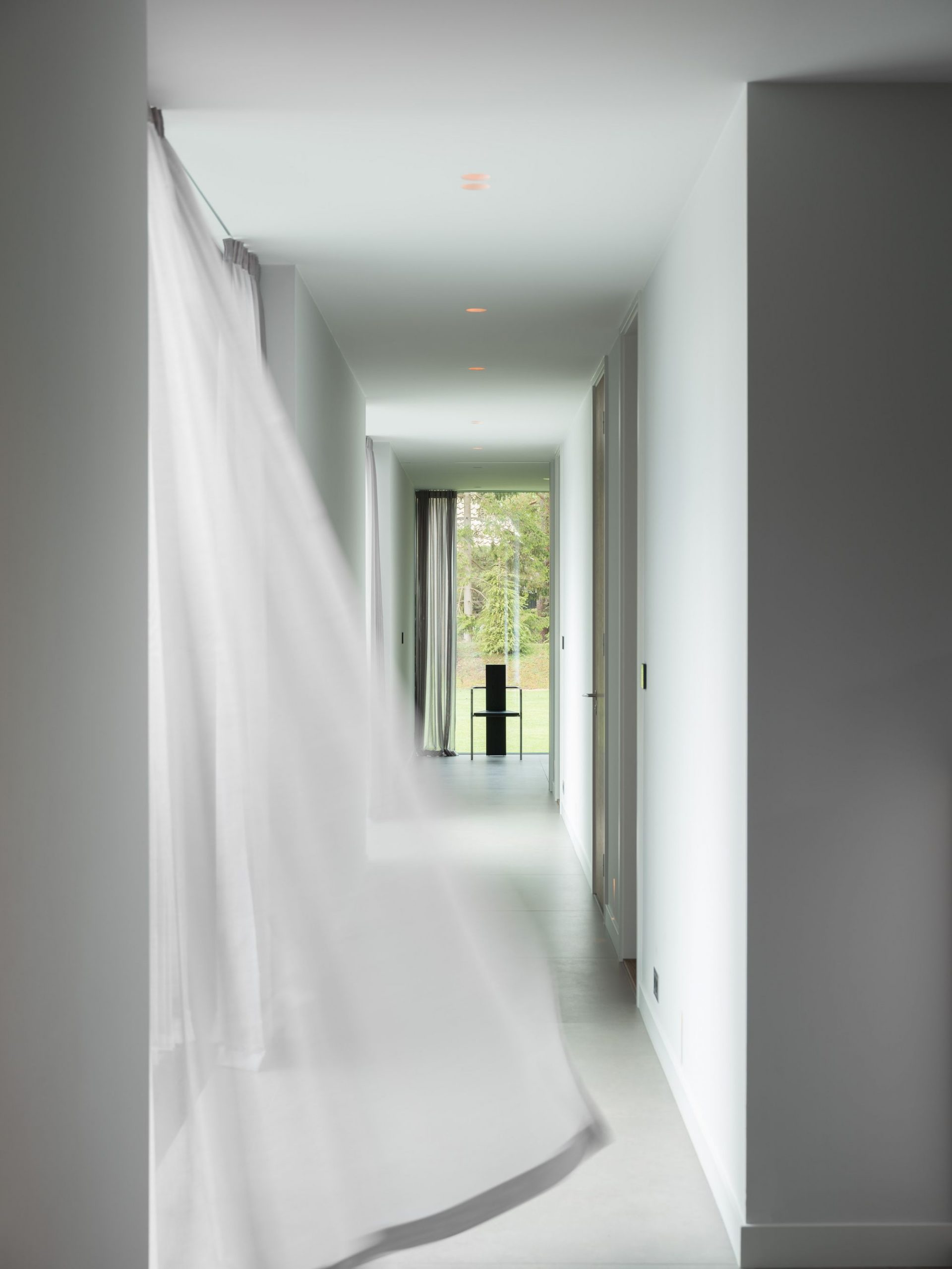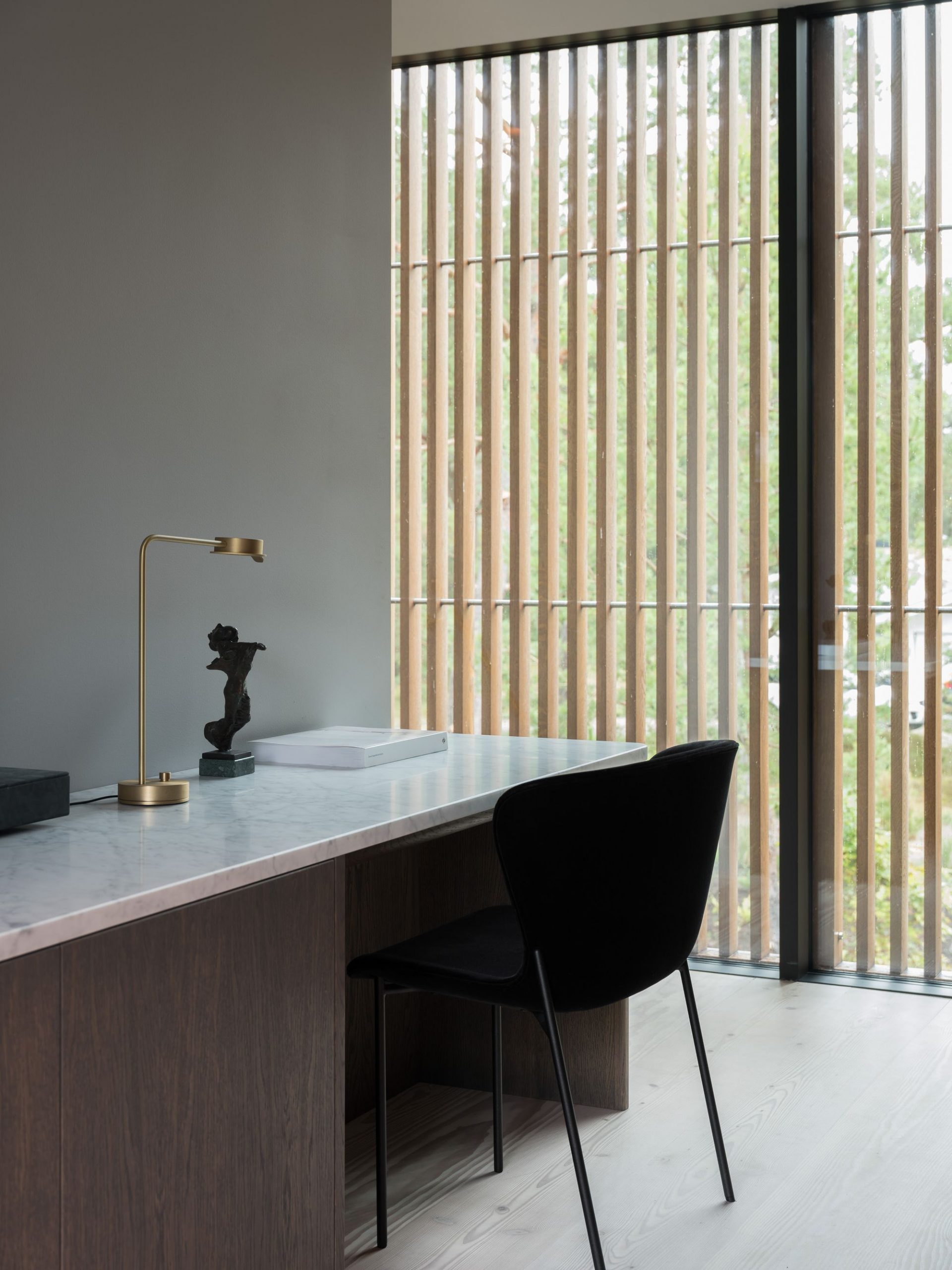 The social spaces on the ground floor are linked to the parents’ private spaces through a staircase, discreetly positioned at the intersection between the principal volumes. This upper level is considered as a separate suite, the parents’ private sphere, from which it is still possible to maintain an overview of the social spaces. Moving between spaces for socializing and contemplation is effortless, making Villa Tennisvägen, simply, a house which is easy to live in.