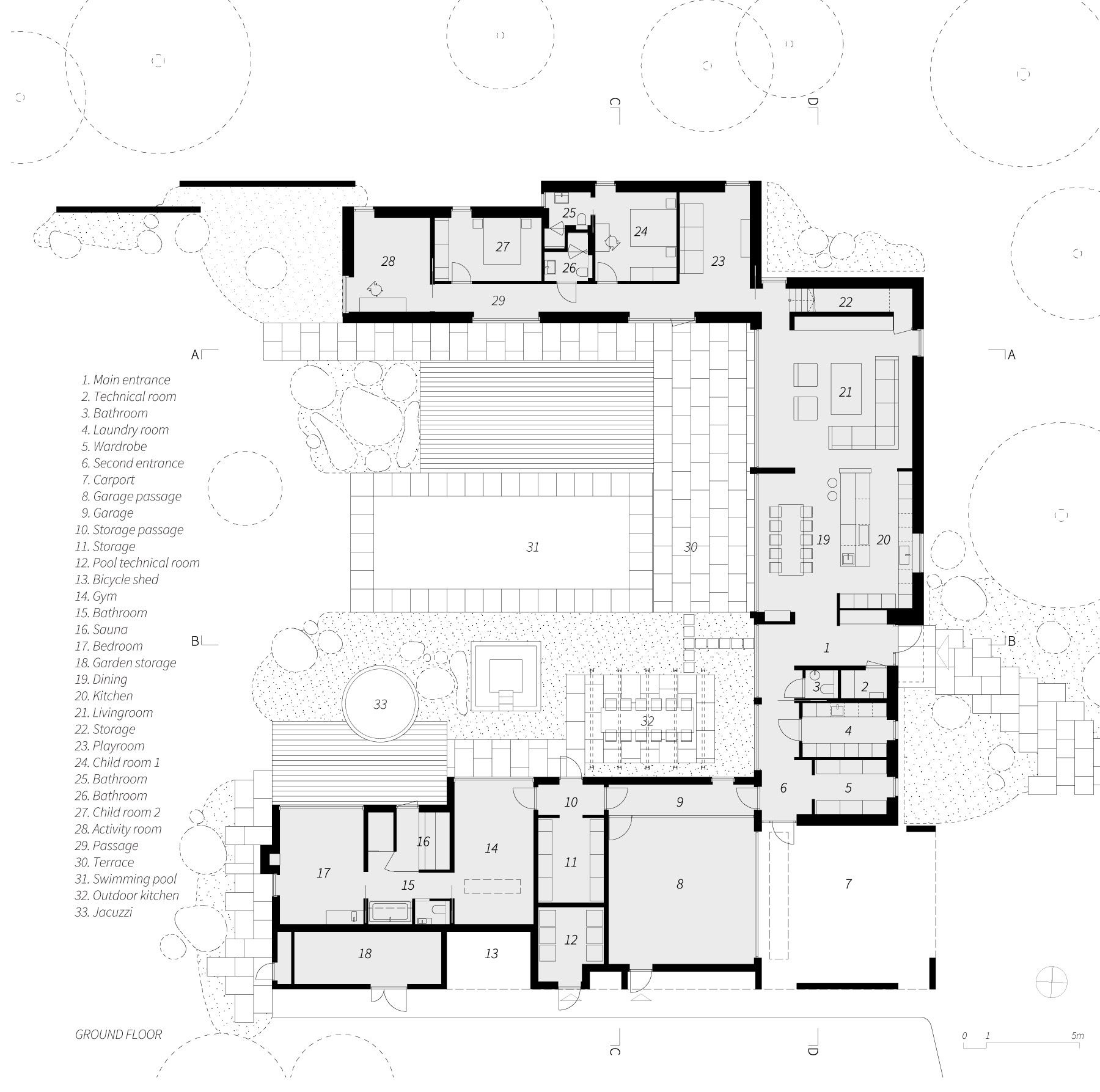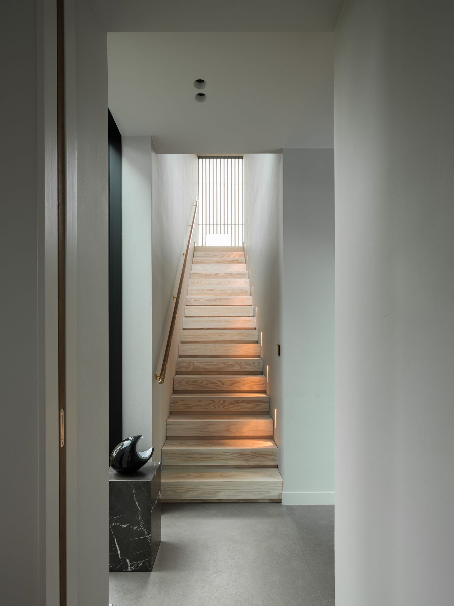 Every part of the house is designed with care. Nothing is hidden. Even the spaces which serve everyday functions are given life. The laundry is accessed through a long corridor with high glass partitions that open directly up to the garden. Both the family and guest entrances are equally welcoming. No single aspect is less important than another.