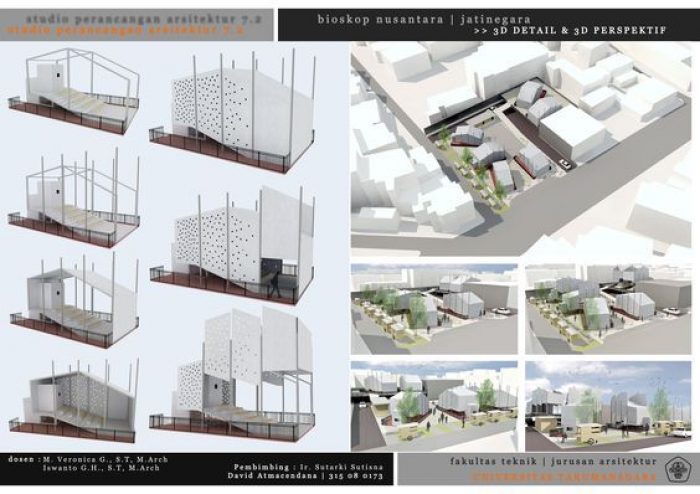 Village Cinemas in Jatinegara, East Jakarta, Starting from the concept of the stadium with a pitch in the middle as the center of the spectators, this theater was designed with the concept of “flexible studio”. The studios arranged on the site, according to the needs of view. There are 6 studios with different film on every studio, studio action films, studio horror movies, adventure movie studio, studio comedy, drama studio, and Dobly 3d studio.
