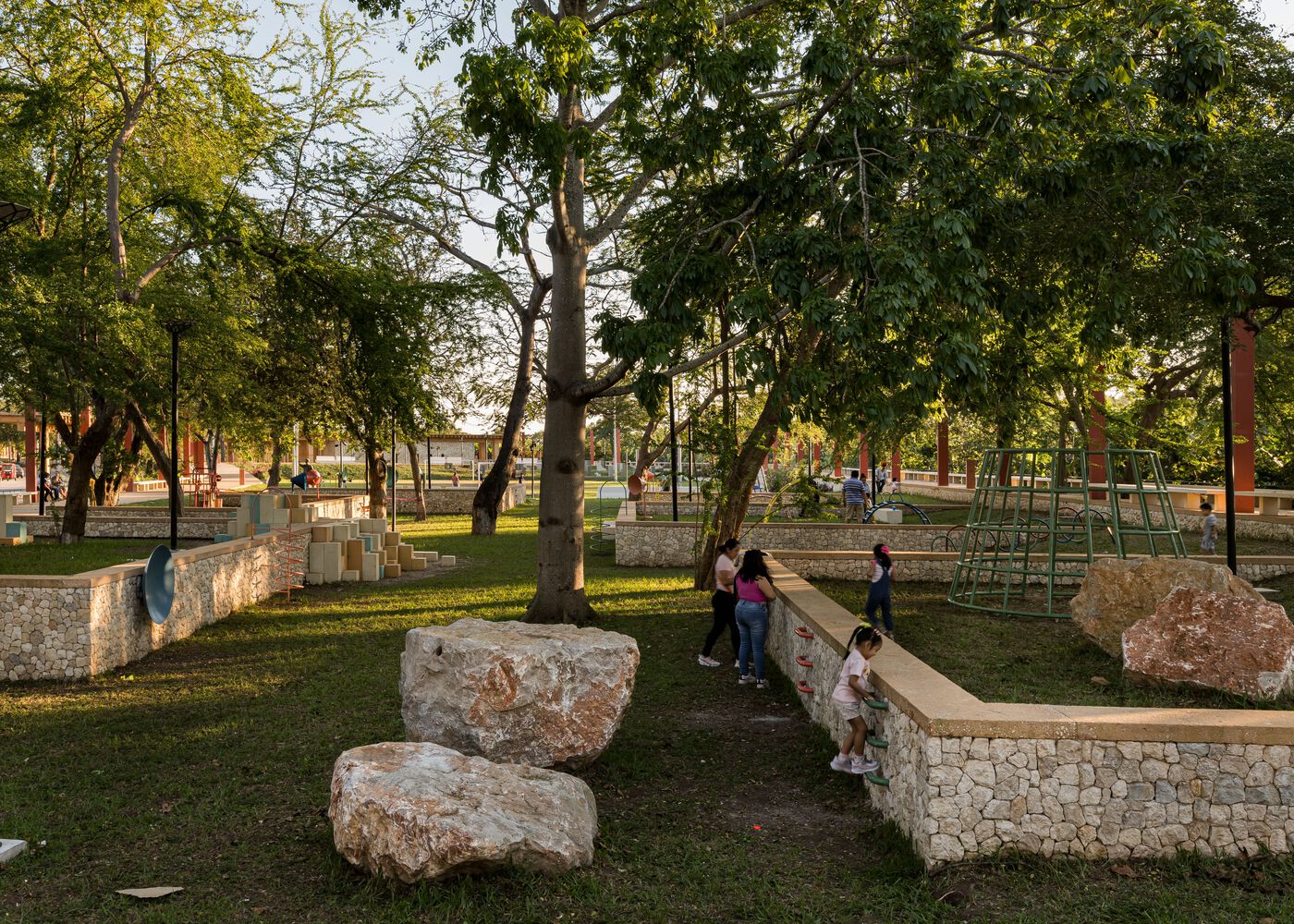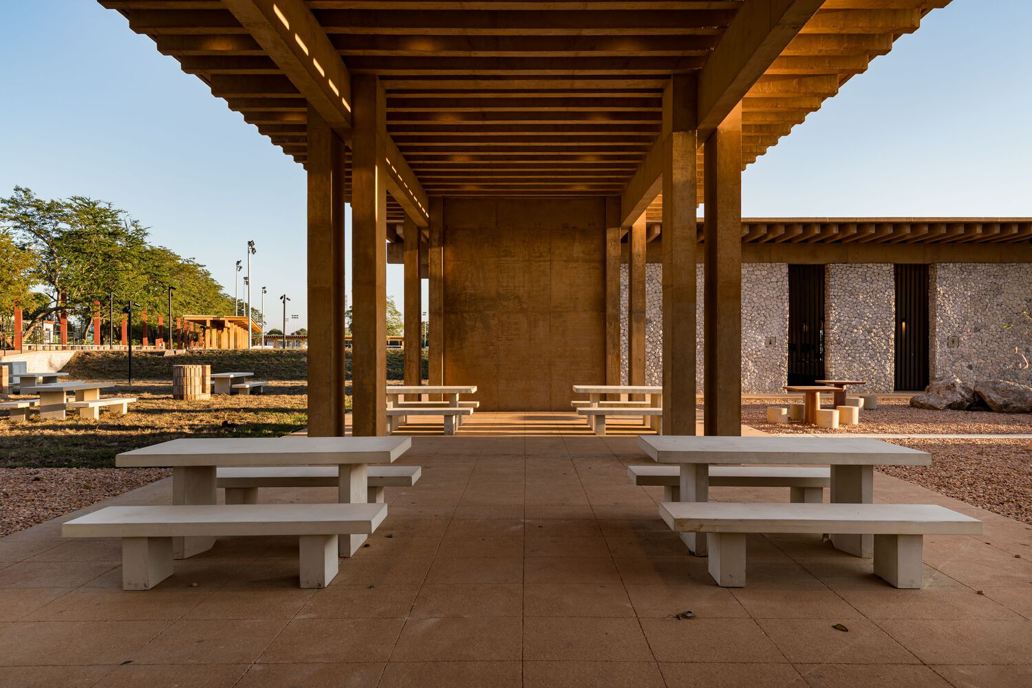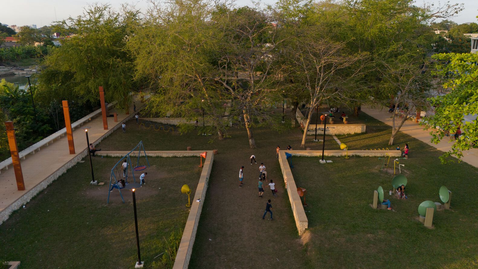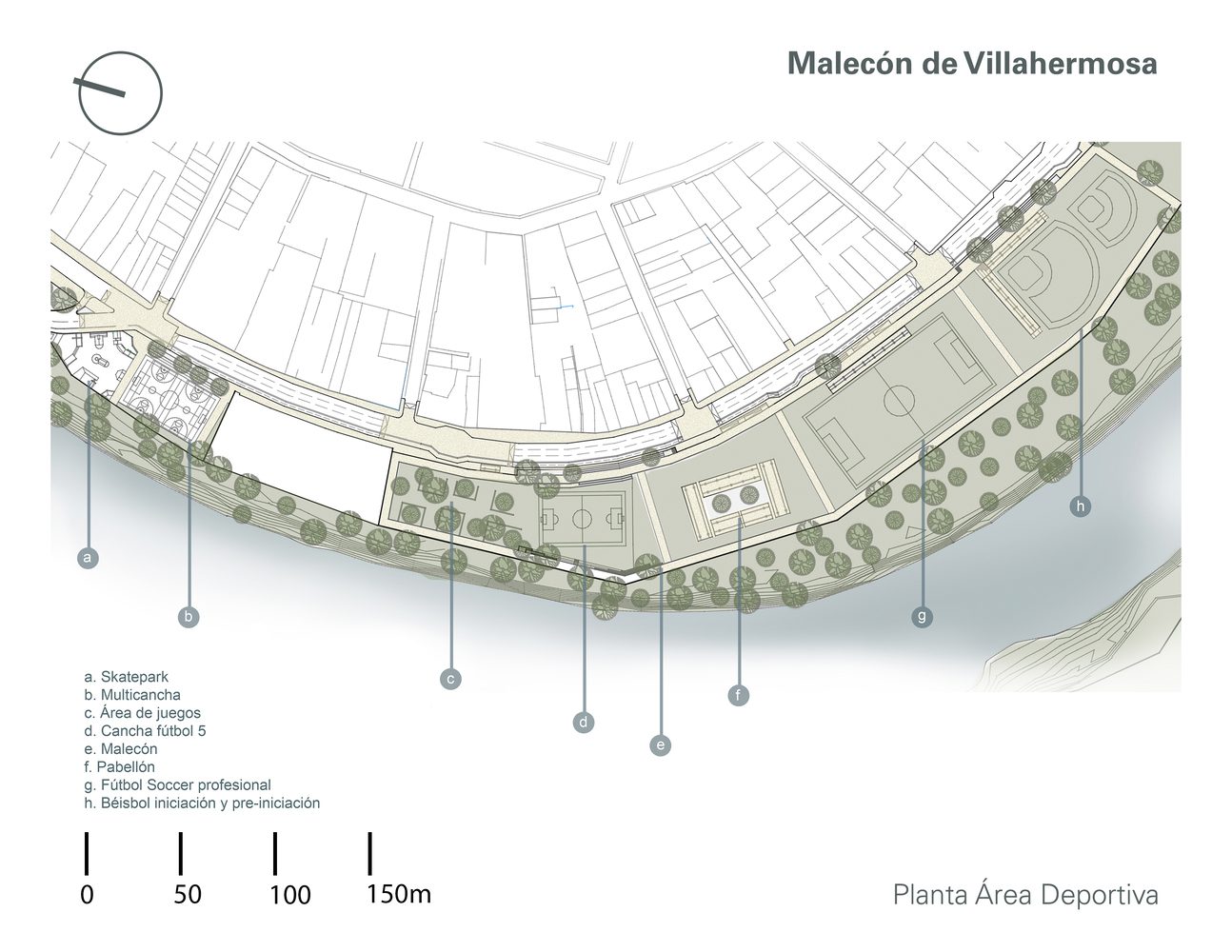 Spanning 6 linear kilometers on both sides of the river, the urban and architectural proposal for the Malecón de Villahermosa was guided by a master plan promoted by SEDATU. This plan included the creation of a pedestrian walkway with panoramic views of the river. Additionally, various recreational and sports areas were created, such as baseball fields, basketball and soccer courts, a skatepark, playgrounds, pavilions, and three buildings for restaurants and kiosks whose designs harmoniously integrate with the natural landscape and generate employment, attracting local, national, and international tourism.
