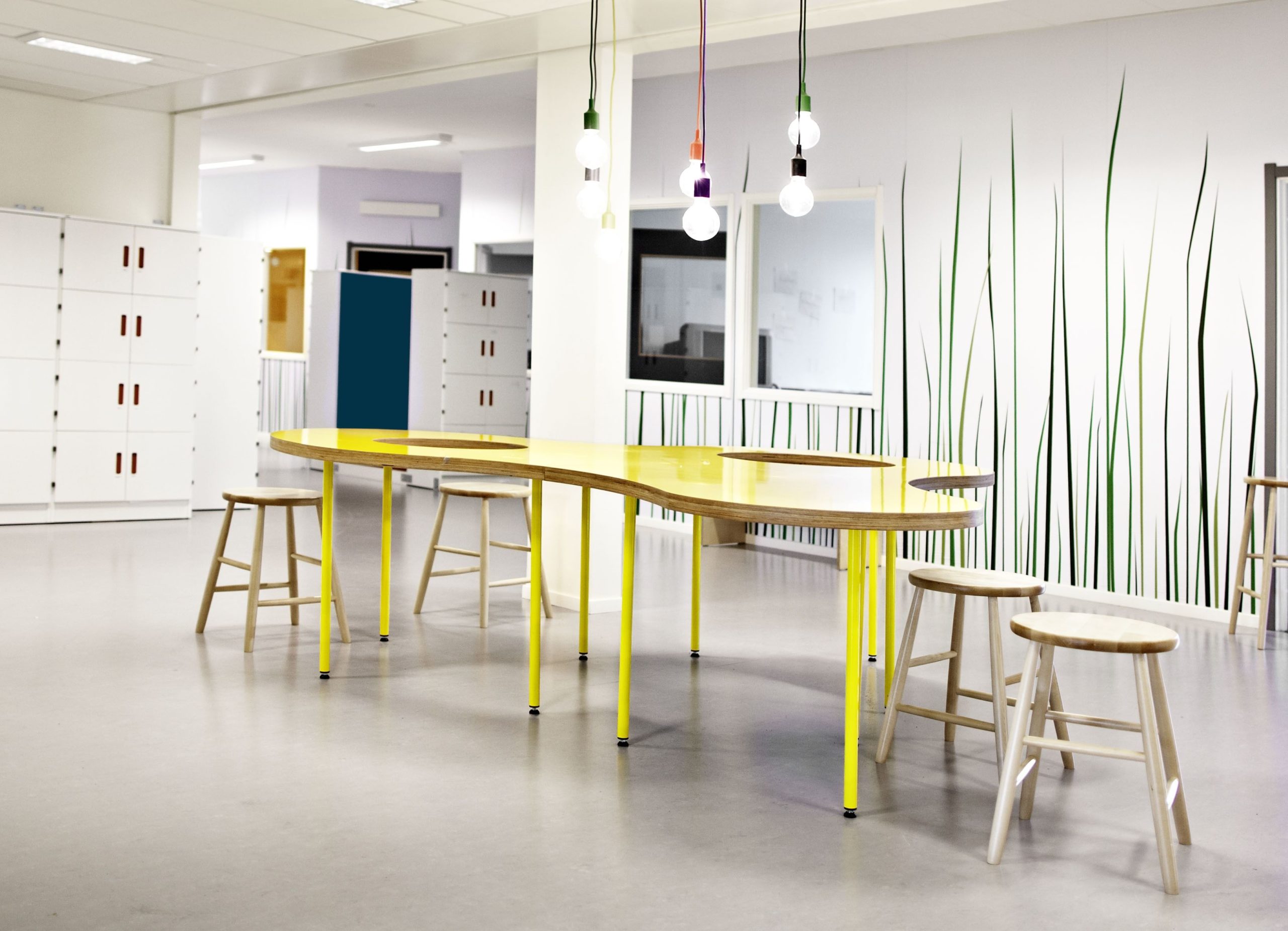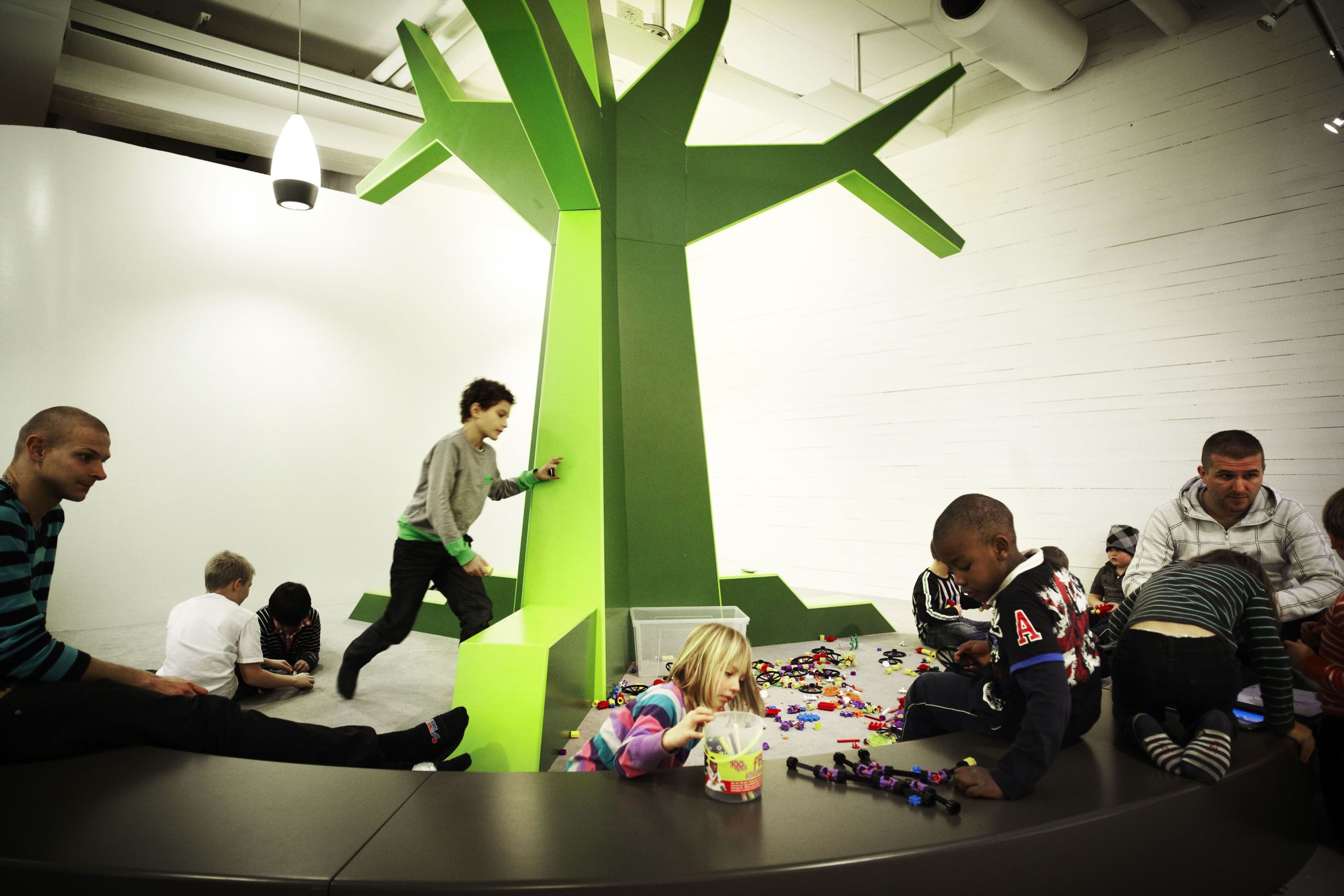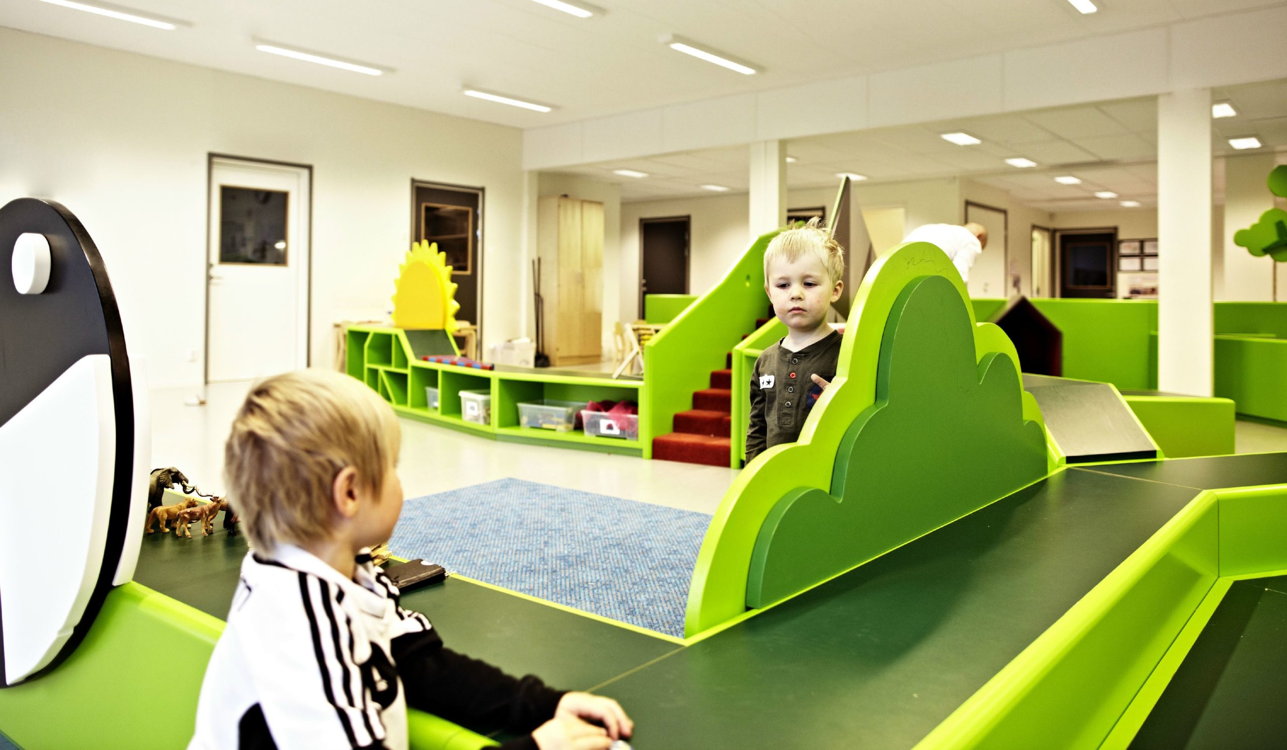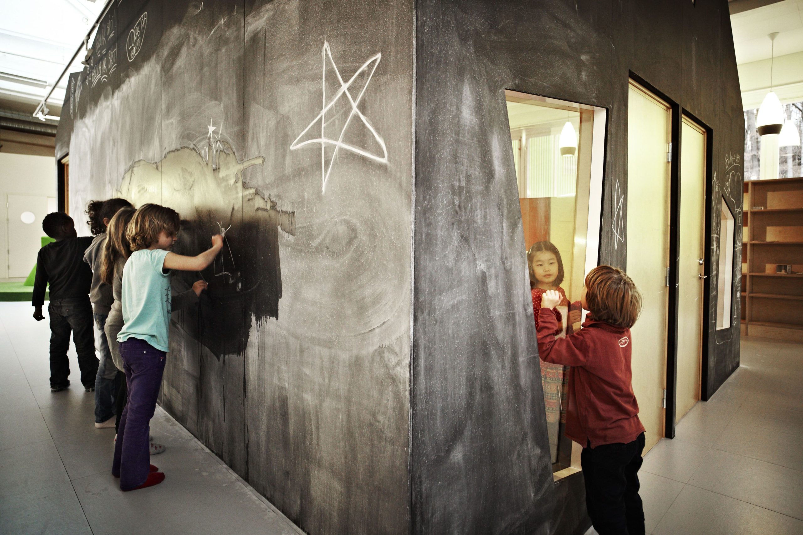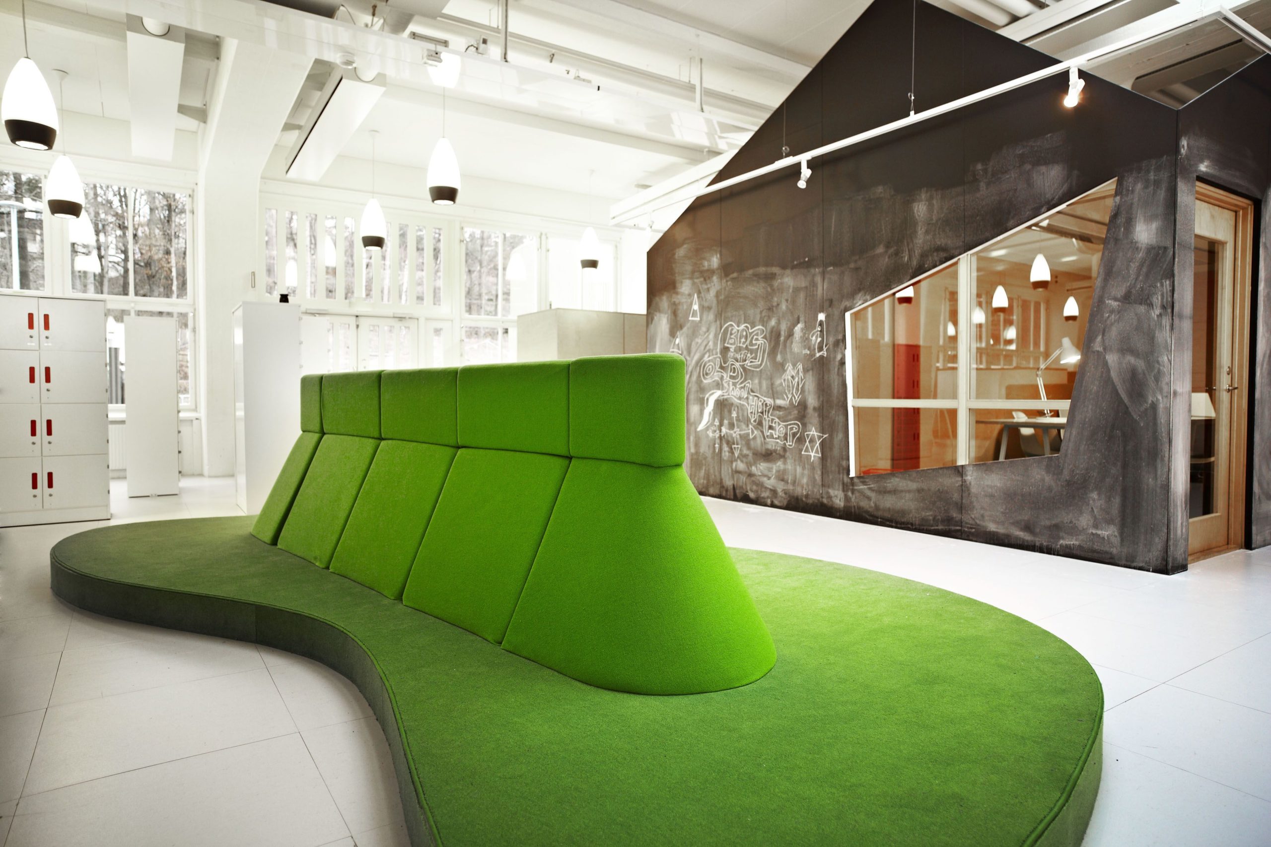 In connection with the establishment of a new Vittra school in Stockholm, Telefonplan, Rosan Bosch Ltd. has created the school’s interior with spatial divisions and significant custom design. The interior takes it the point of departure in Vittra’s pedagogical principles and serves as a pedagogical tool for development in the every day of the school. Instead of classical divisions with chairs and tables, a giant iceberg, for example, serves as cinema, platform, and room for relaxation, and sets the frame for many different types of learning. Moreover, flexible laboratories make it possible to work hands-on with themes and projects.