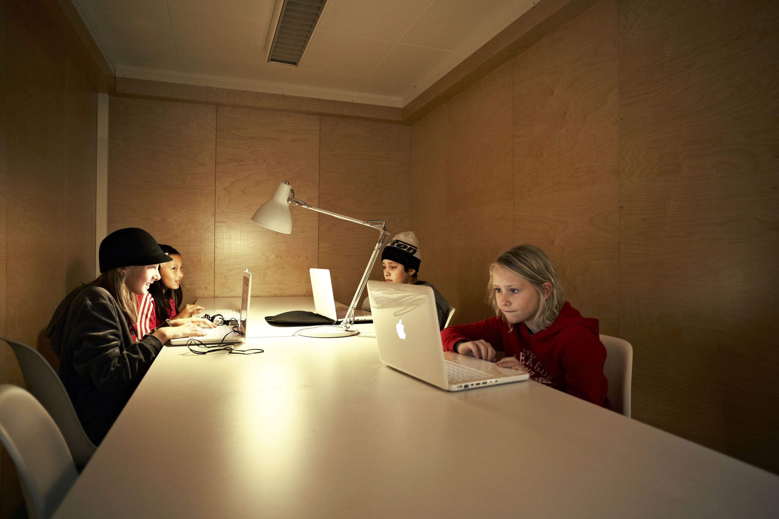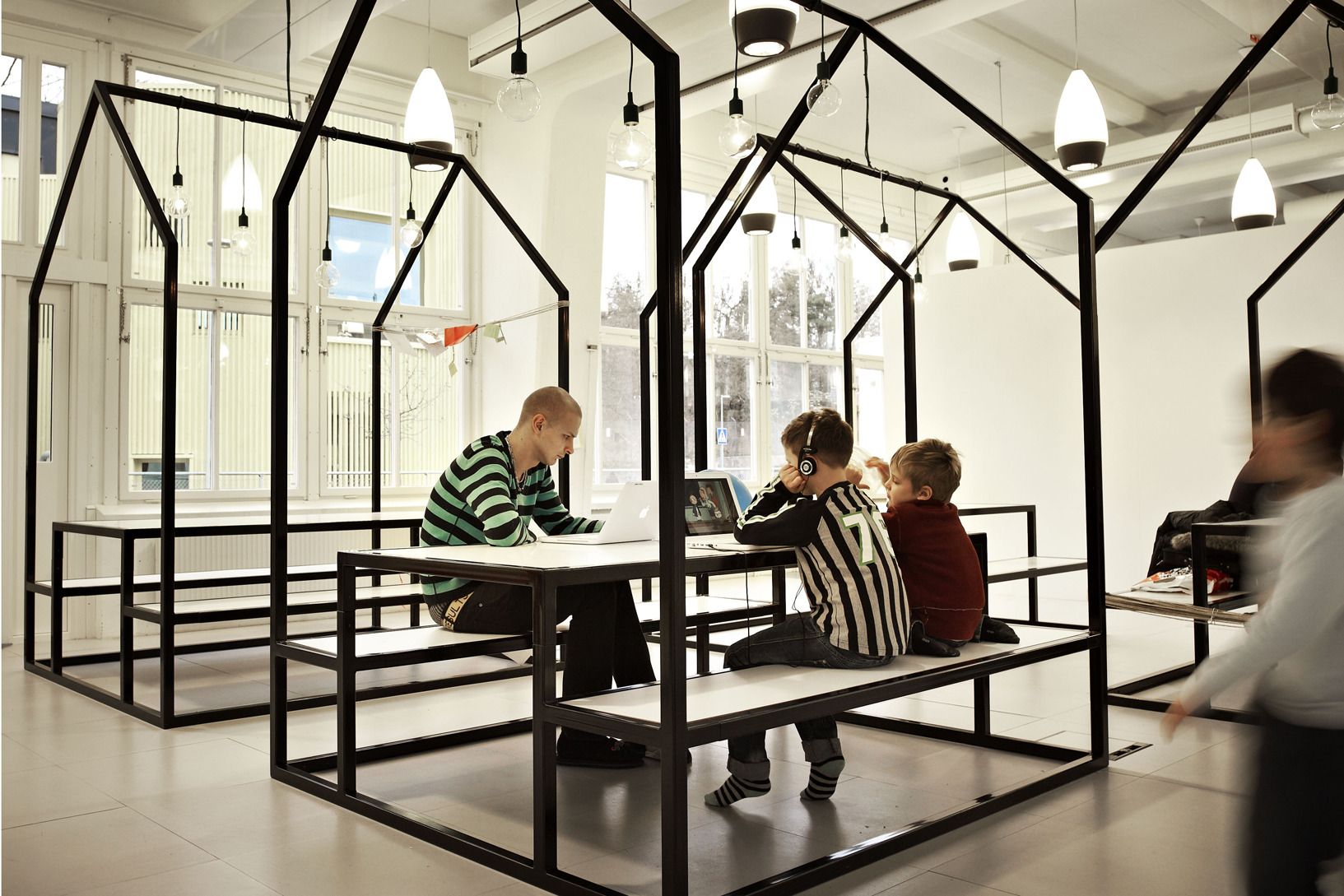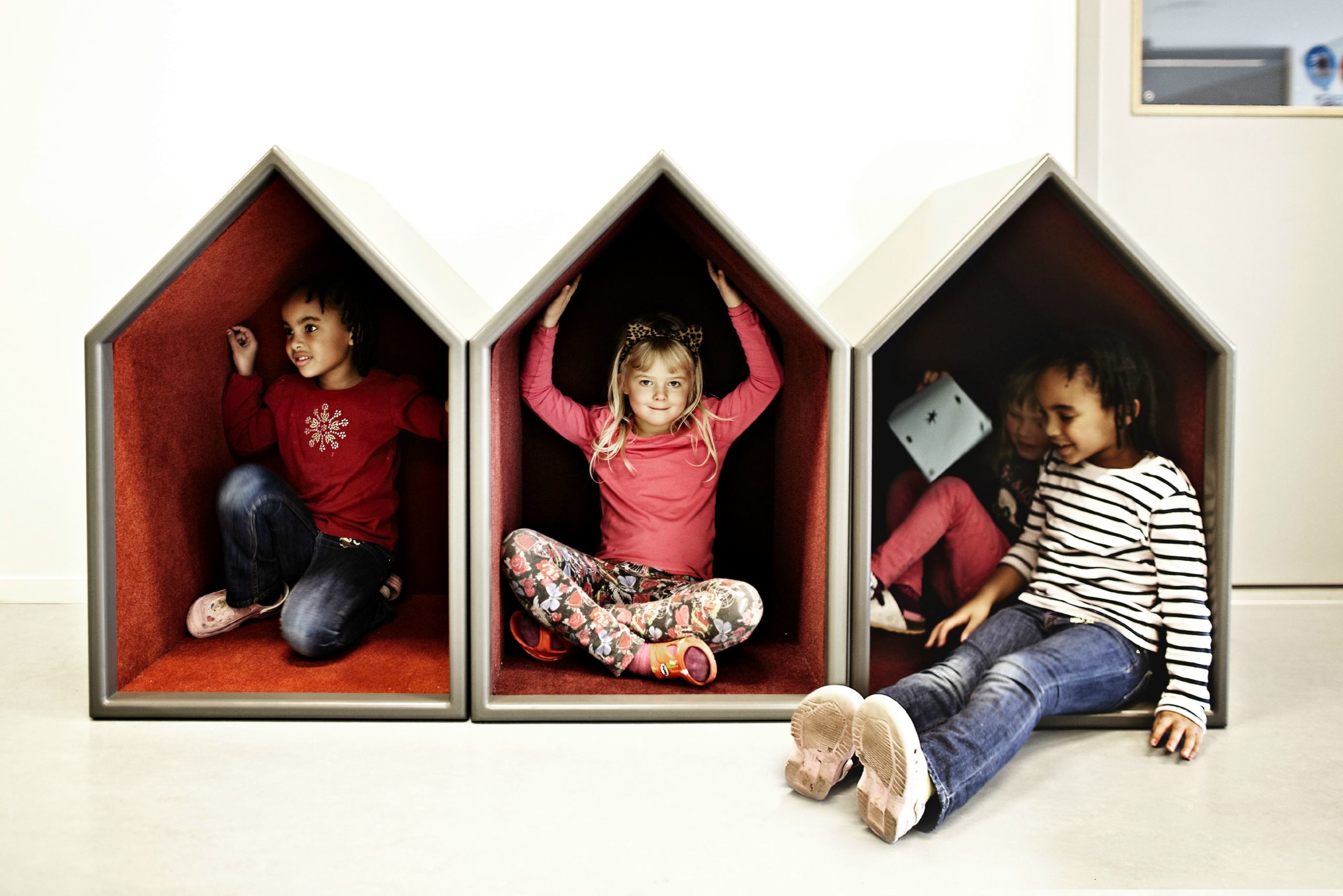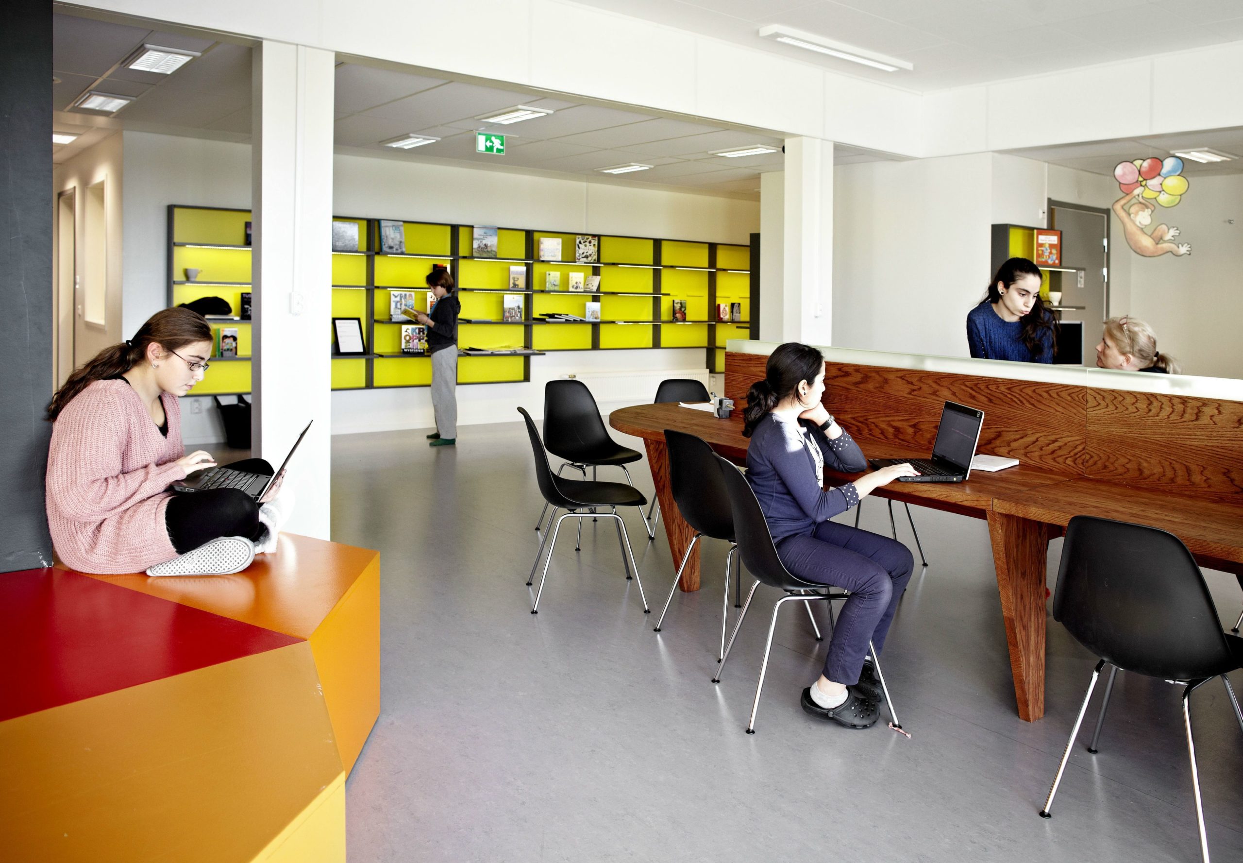 The design and interior are accustomed to Vittra’s active work with digital media and a generally digitalised didactic where the children’s laptops are their most important tool in the everyday – whether they are sitting, lying or standing up when working.