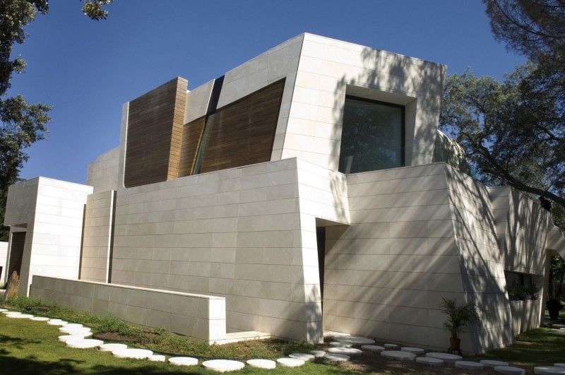 The property is situated on a generously sized plot with a slight slope to the south and heavily wooded with mature garden to have been conserved in the project.Outside intervention is more apparent on the south side, since it is the most visible, clear elevation of the house because in large part it is covered with ivy that has wanted to maintain the property and an adjacent building that houses the garage. In this south facade forms are obtained with aluminum foil. This new look is more modern, more organic following a line with the guidelines undulating forms A-cero studio.In addition to this formal review, also made structural improvements in housing as the expansion of the area of the room and extend the porch leveraging the volumes of the new projections.