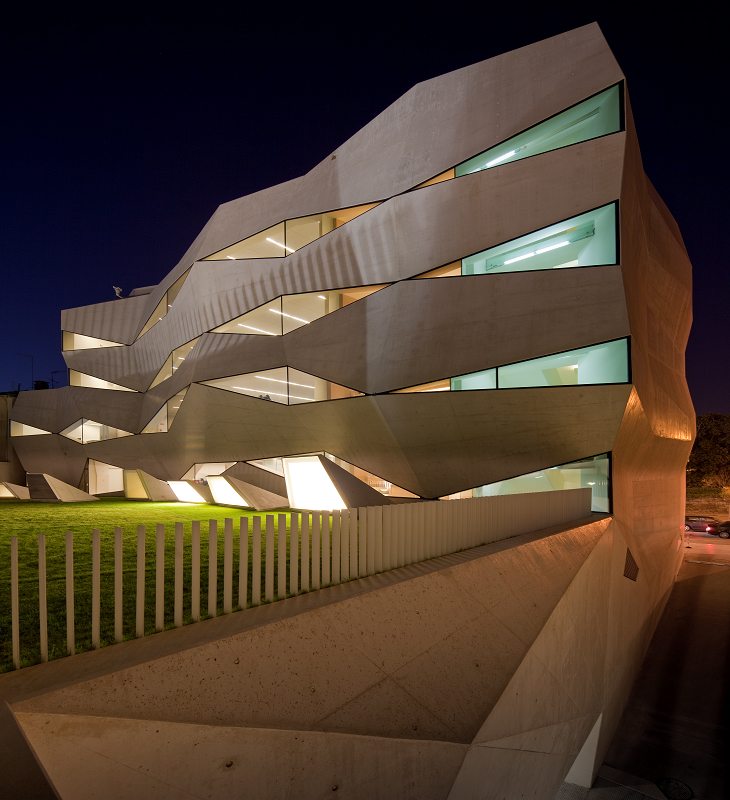 Barbosa Guimarães Architects have made amazing use of the versatility of concrete in Porto, Portugal’s new Vodafone Headquarters. Versatility in form as well as versatility in program. The exterior concrete form creates a shell around the space within, which in conjunction with the two stairwells and three central pillars, is all the structure the place needs. This leaves the interior largely free of space-taking structure and open for function.
