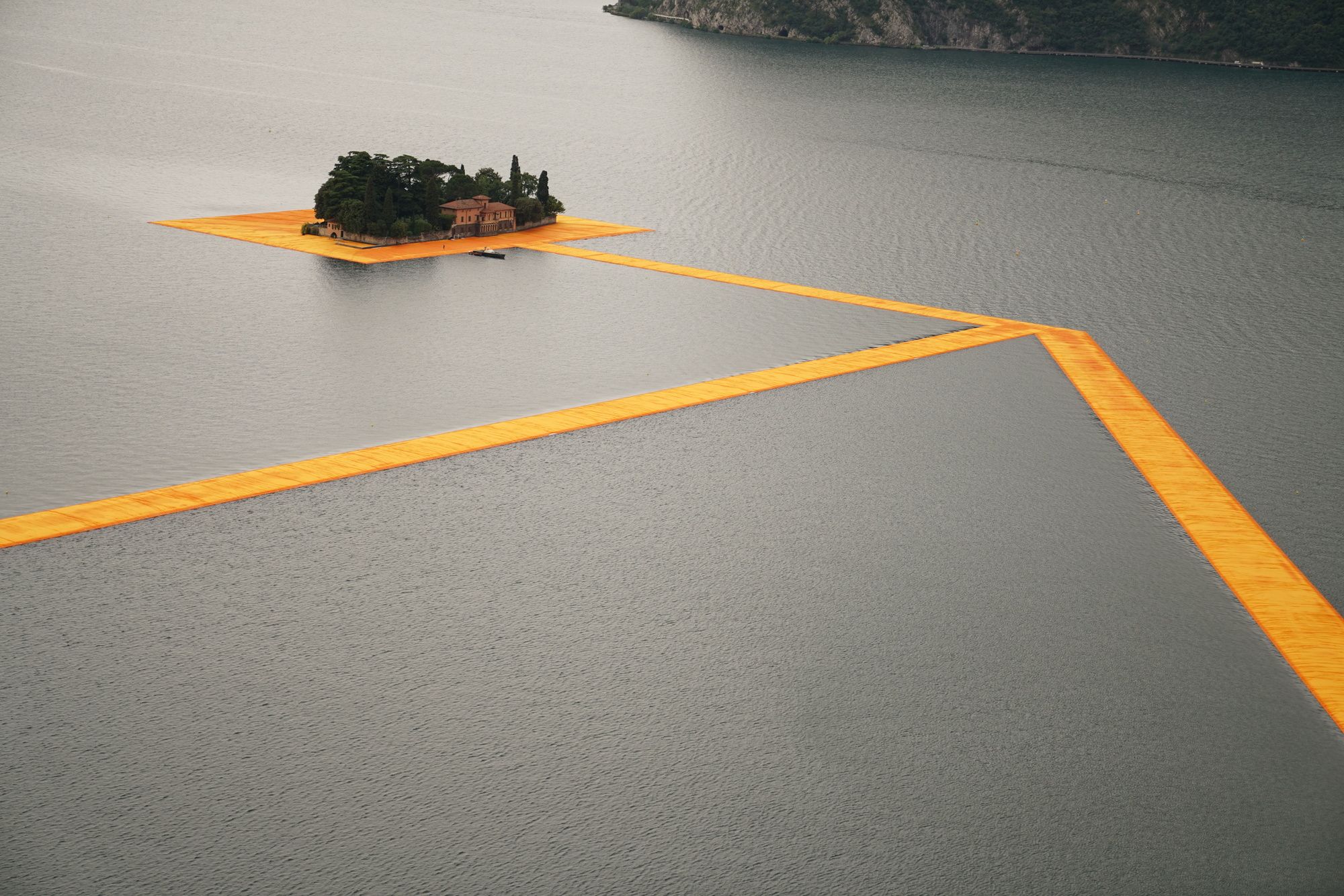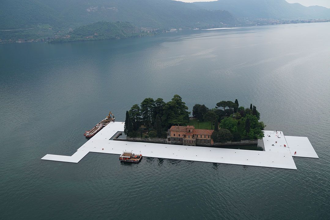 The installation is absolutely free and accessible to visitors 24/7. The concept was first conceived by the artist Christo and his wife, Jeanne-Claude, in 2007, and it is the first large-scale project he has completed since her death in 2009. With the work, visitors will experience the beauty of the lake and its surroundings while walking across it from the small town Sulzano to Monte Isola and to the island of San Paolo, which is framed by the piece.