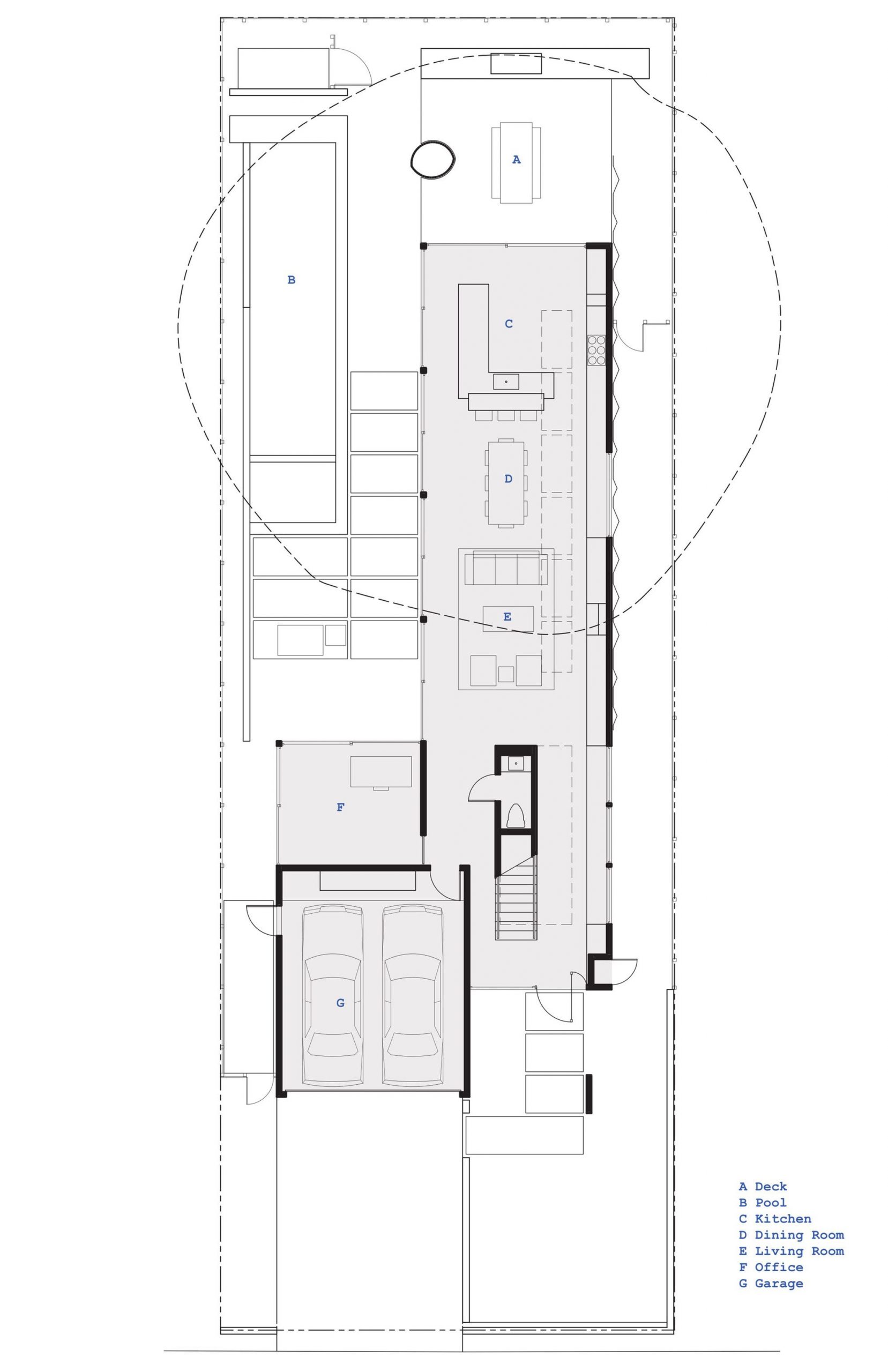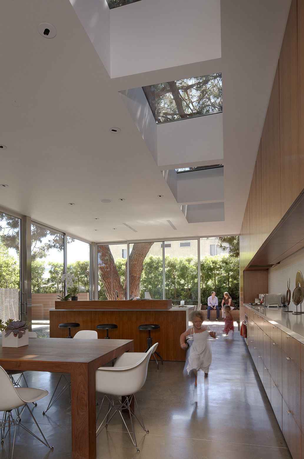 The Walnut Residence is located in Venice, California, a beachside community characterized by small lots (30’ wide x 120’ wide), an eclectic mix of architecture and a unique blend of personality. While the tight square footage of the lot and an existing tree constrained the organizational possibilities of the home, the connection to community, the need for privacy and security, and interest in natural lighting offered endless possibilities.