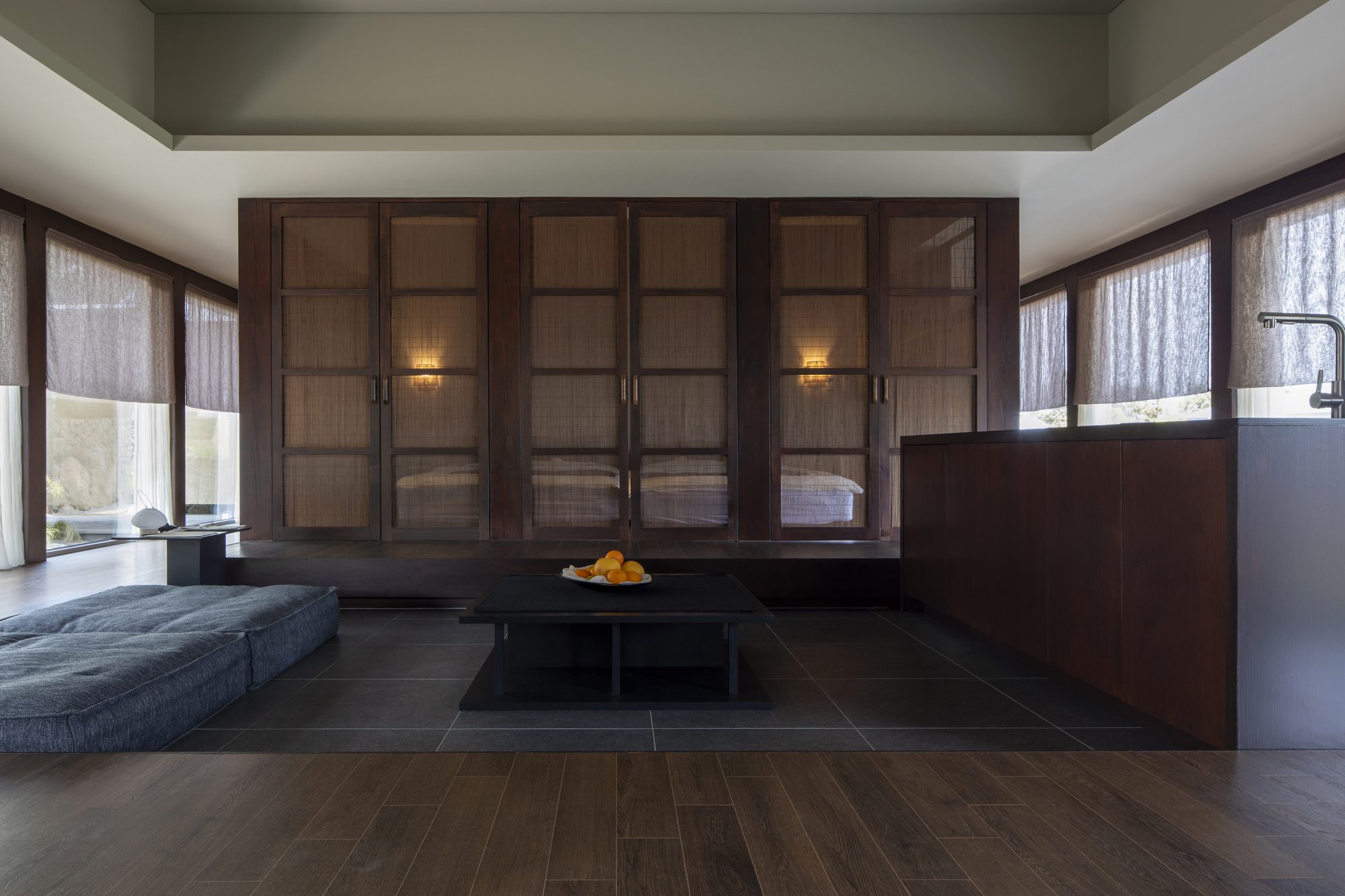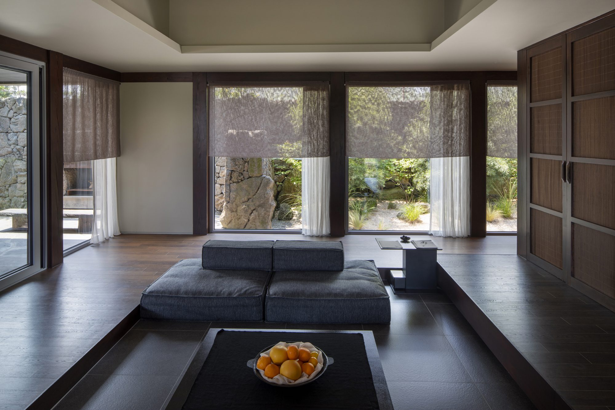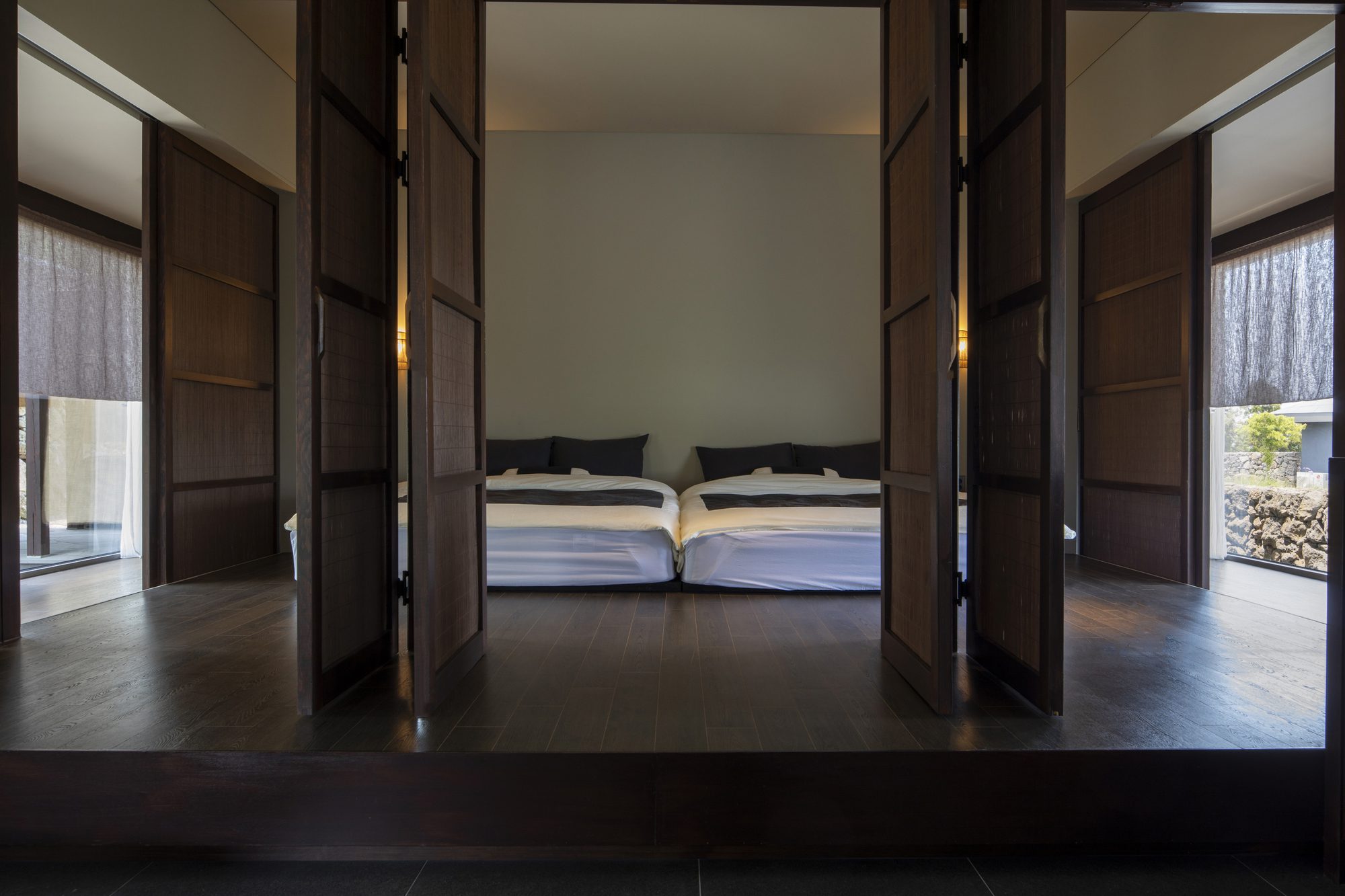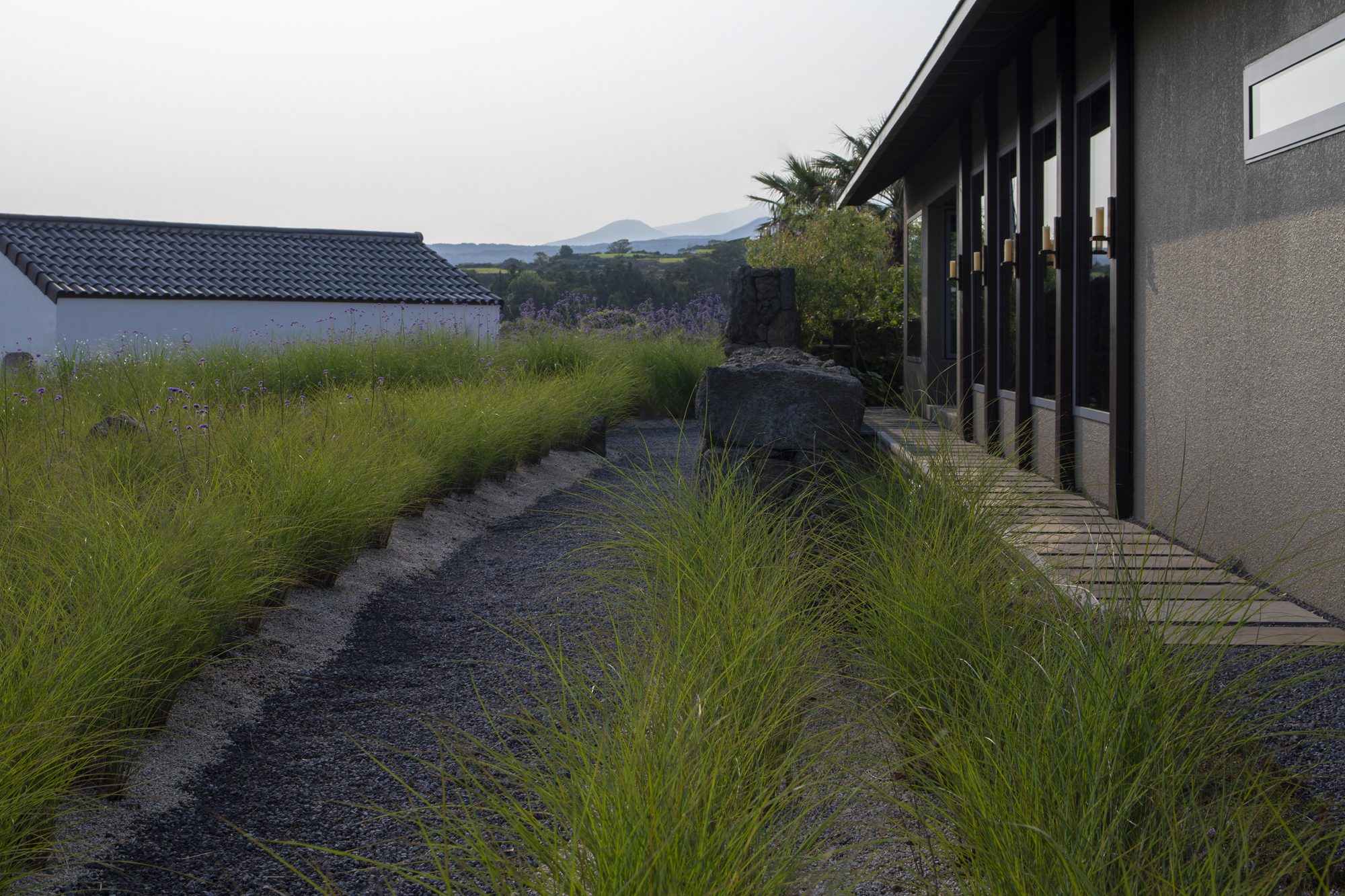 Watarstay [Wa:Tar], In Bongseong-ri, Jeju, where Hallasan Mountain and the oreums harmonize, Watar rests on the land as an accommodation space capturing the beauty of Tamna (the old name for Jeju) through a refined sensibility. We sought to embody Jeju’s classical landscapes and the reflections born from them in a contemplative atmosphere unique to this place—an ambiance that flows into its own sensibility and emotion. The narrative beauty of the land deepens the architecture with a quiet gradient of shadows, leaving an impression imbued with a calm and time-worn grace.