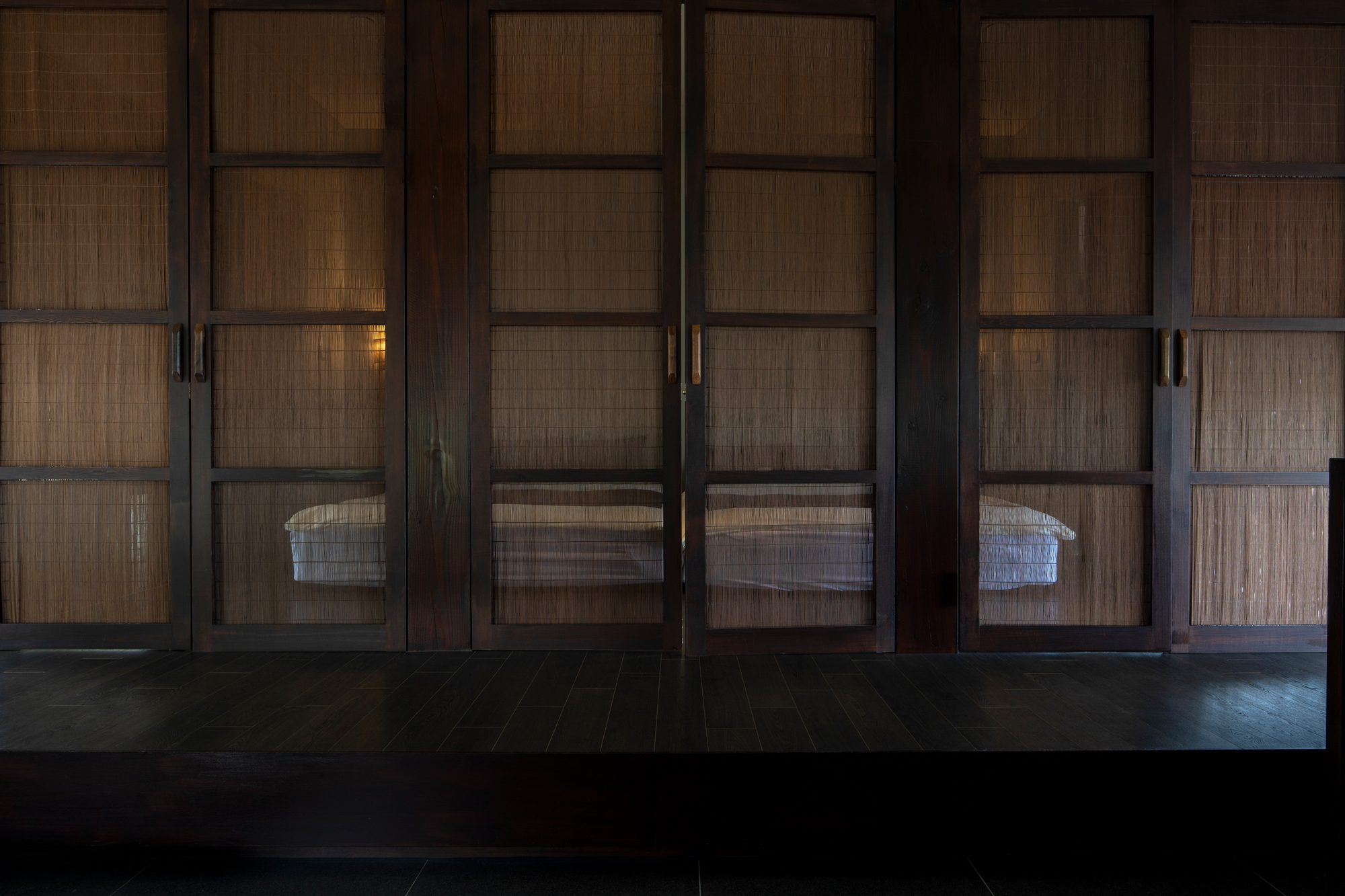 At the far end of the space lies a bathing room, conceived in the spirit of Mok-yok Jae-gye* (沐浴齋戒)—a ritual of purifying both body and mind—becoming a place for Seong-ui Jeong-sim* (誠意正心), where one refines the heart with sincerity and integrity. This was born from the owner’s approach to the space: a cultivated mindset of sincerity and moral clarity formed the foundation of the architecture, later extending into the way guests are welcomed and materializing in the spatial form of ritual cleansing. This bath, therefore, is not merely a space for hygiene but a place where the owner’s ethos is translated into physical form—a space of courtesy where guests may restore themselves to a state of clarity and tranquility.