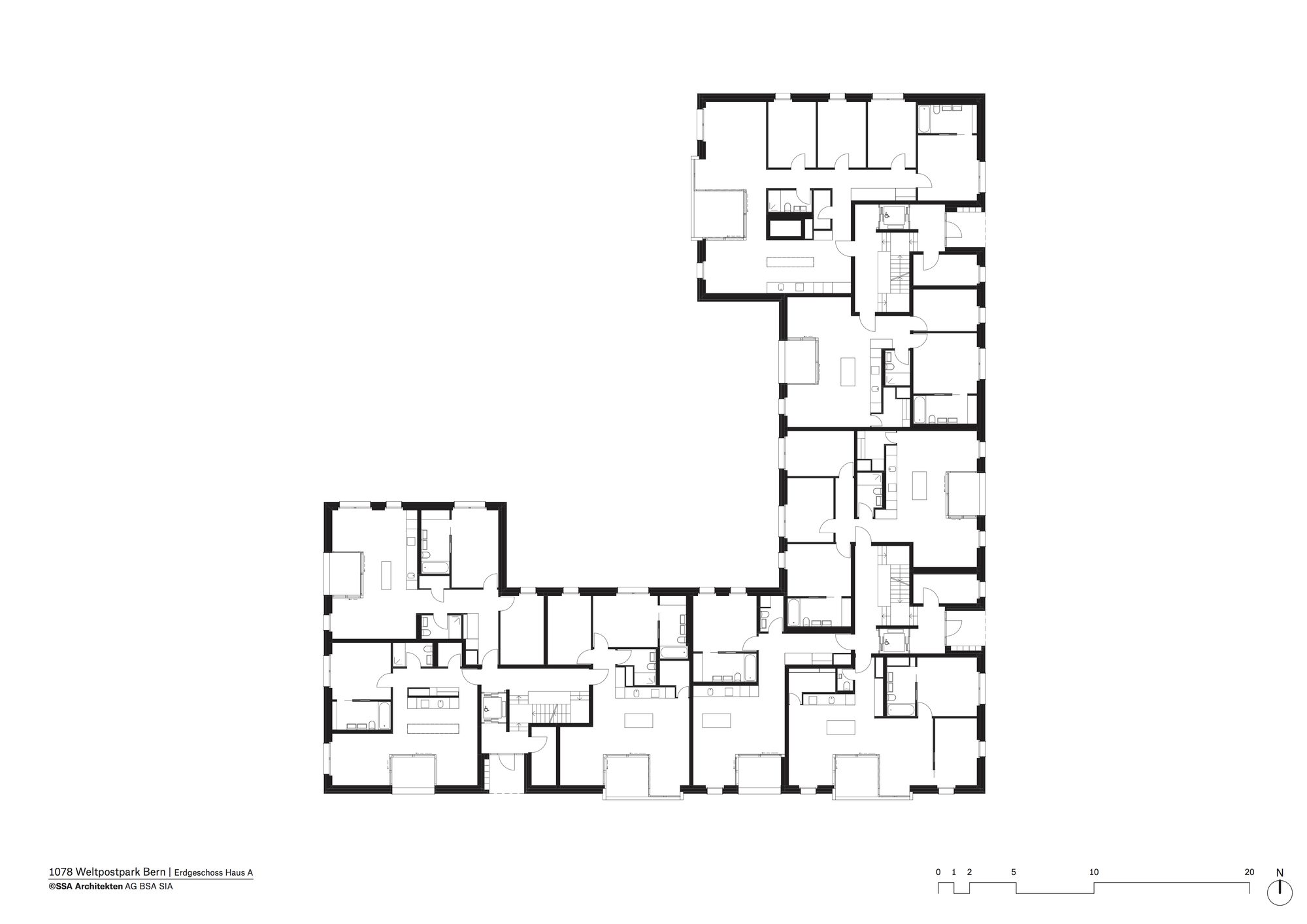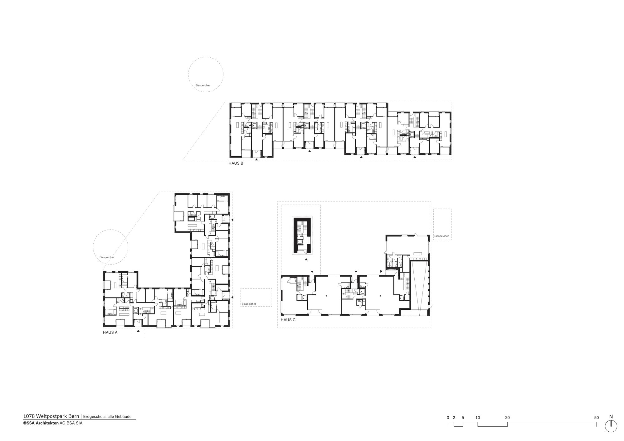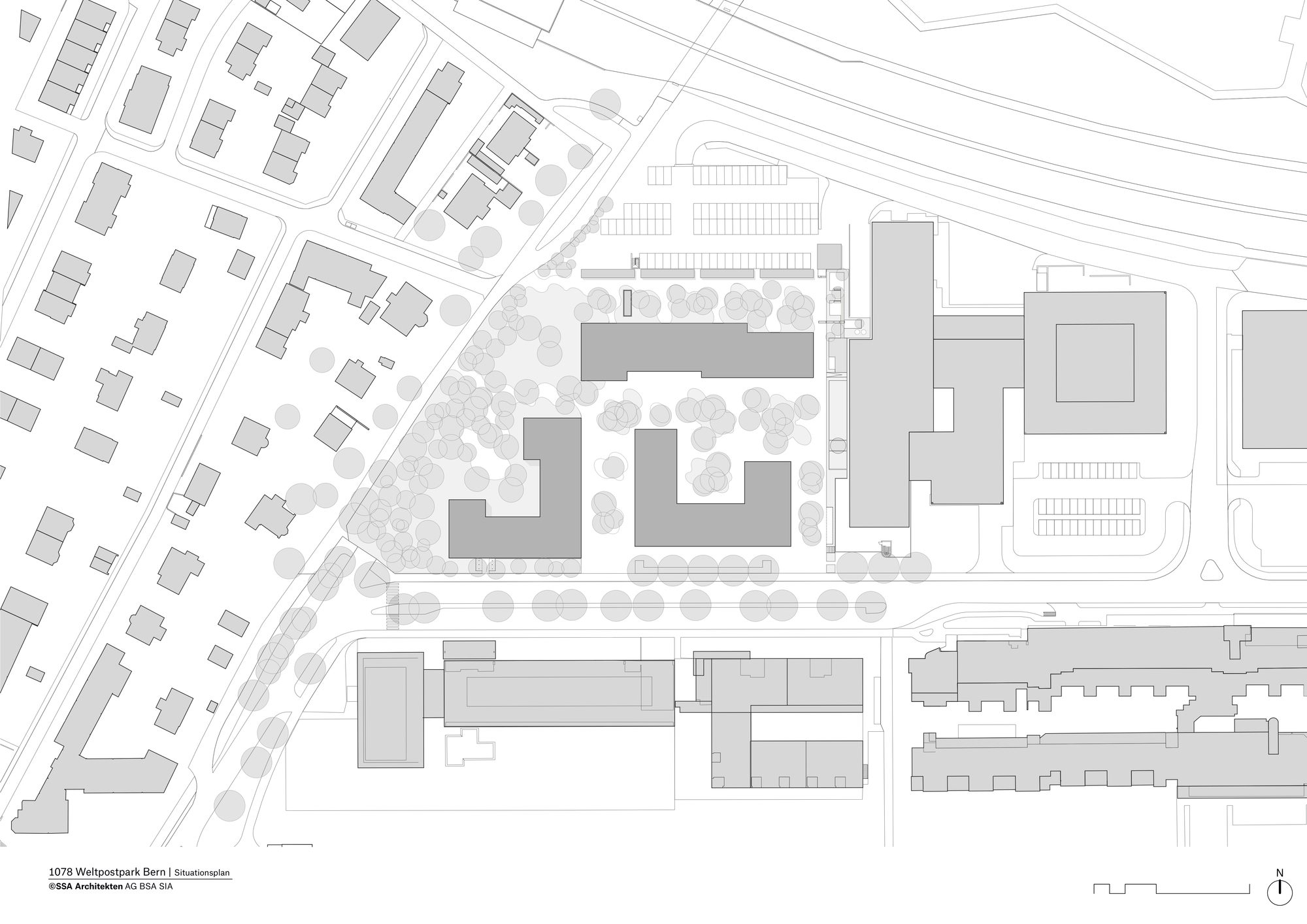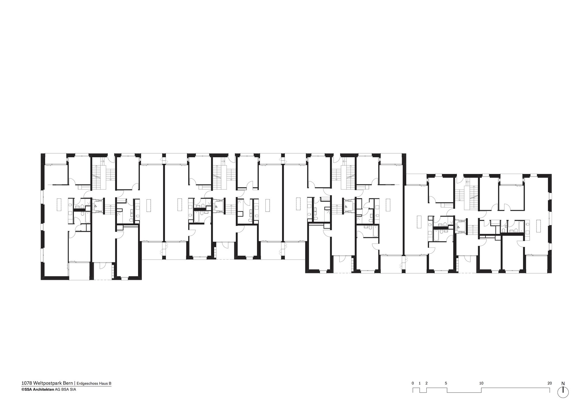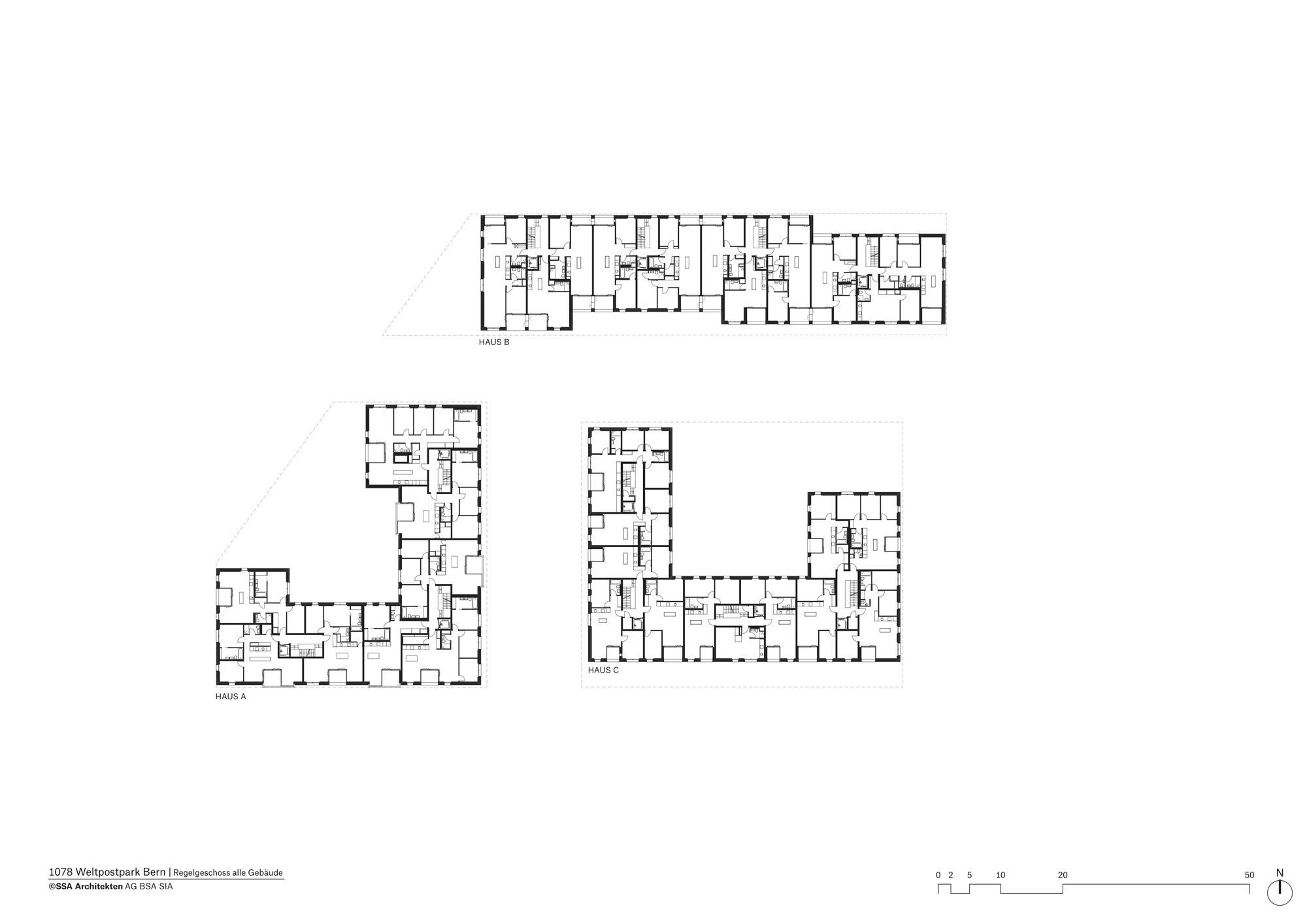 Sustainable architecture in an urban context The last apartments in the SSA Architekten-designed Weltpostpark development are now occupied. The striking six-storey residential buildings have an urban feel about them, while the park-like surroundings and the varied clinker brick facades create a homely atmosphere. What’s more, high-quality architecture also includes affordable residential units, and the development’s demand for energy is met in its entirety by regenerative resources. The Oberes Murifeld site is a heterogeneous mixed residential and urban quarter. Facing the Weltpoststrasse road are the larger office blocks of the Weltpostverein alongside a number of commercial and industrial buildings. A motorway marks the northern limits of the site. In between are a range of villas, allotments, and smaller parks. The design concept of the three residential buildings by SSA Architekten takes its cue from this variety of surrounding elements.