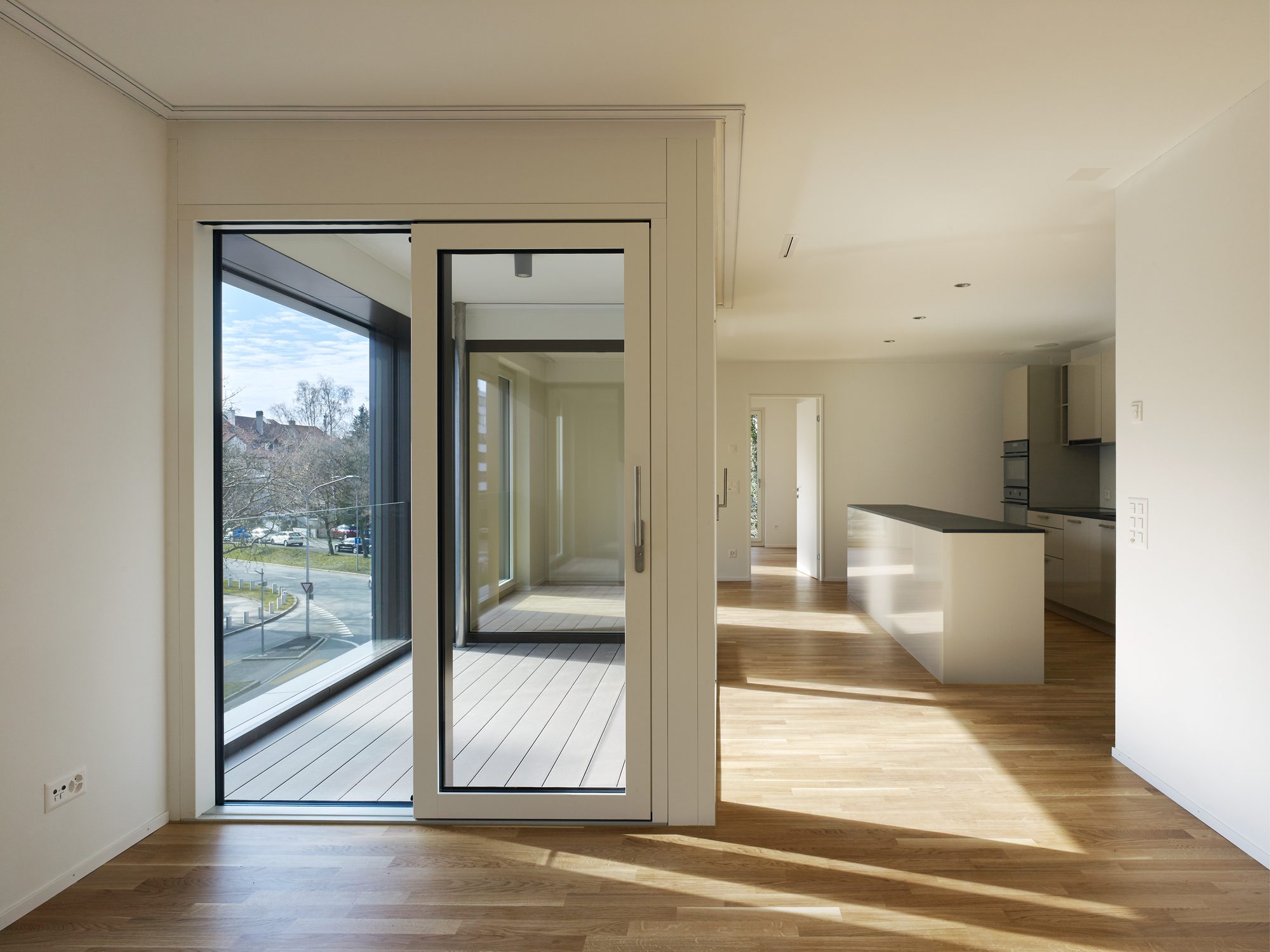 The heights of the Weltpostpark buildings are aligned with the six-storey office blocks. The angled volume (House A) establishes a flowing transition to the housing developments and the greenbelt to the west, while the stretched building (House B) shelters a quiet courtyard from the noise of the adjacent motorway. Several spaces for retail and commercial premises along the Weltpoststrasse road are provided on the ground floor of the U-shaped structure (House C). The landscapers of Fontana Landschaftsarchitektur created a park-like environmental concept for the pedestrianised courtyards. It has its starting point in the already established nature protection zone to the west which has now been integrated as a park into the final concept.