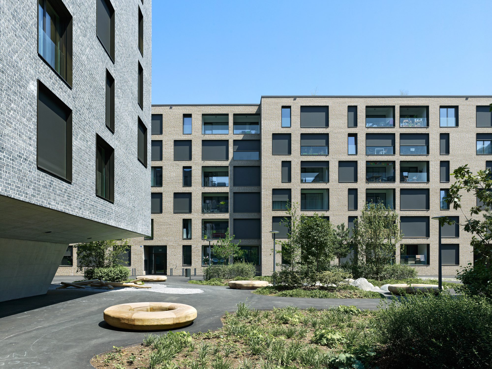Another “little difference” can be found in the clay used for the bricks: in House A it tends towards a reddish-brown, House B is more of a brighter red and for House C the architects chose a grey-brown clinker brick. The demand for housing in the city remains high, especially in the affordable price bracket. In House C the monthly net rentals for some of the three-bedroom apartments are set at CHF 2,000.-, which is a very affordable price for a new build apartment in Switzerland. This is also in accordance with the target set by the city of Bern to increase the number of affordable rental units by 1,000 by the year 2025.