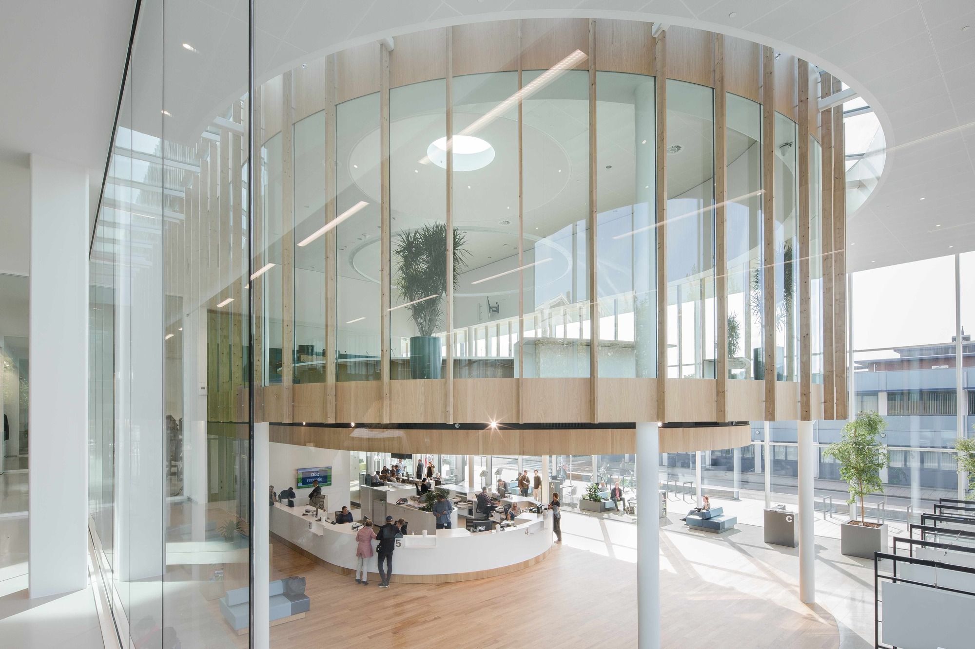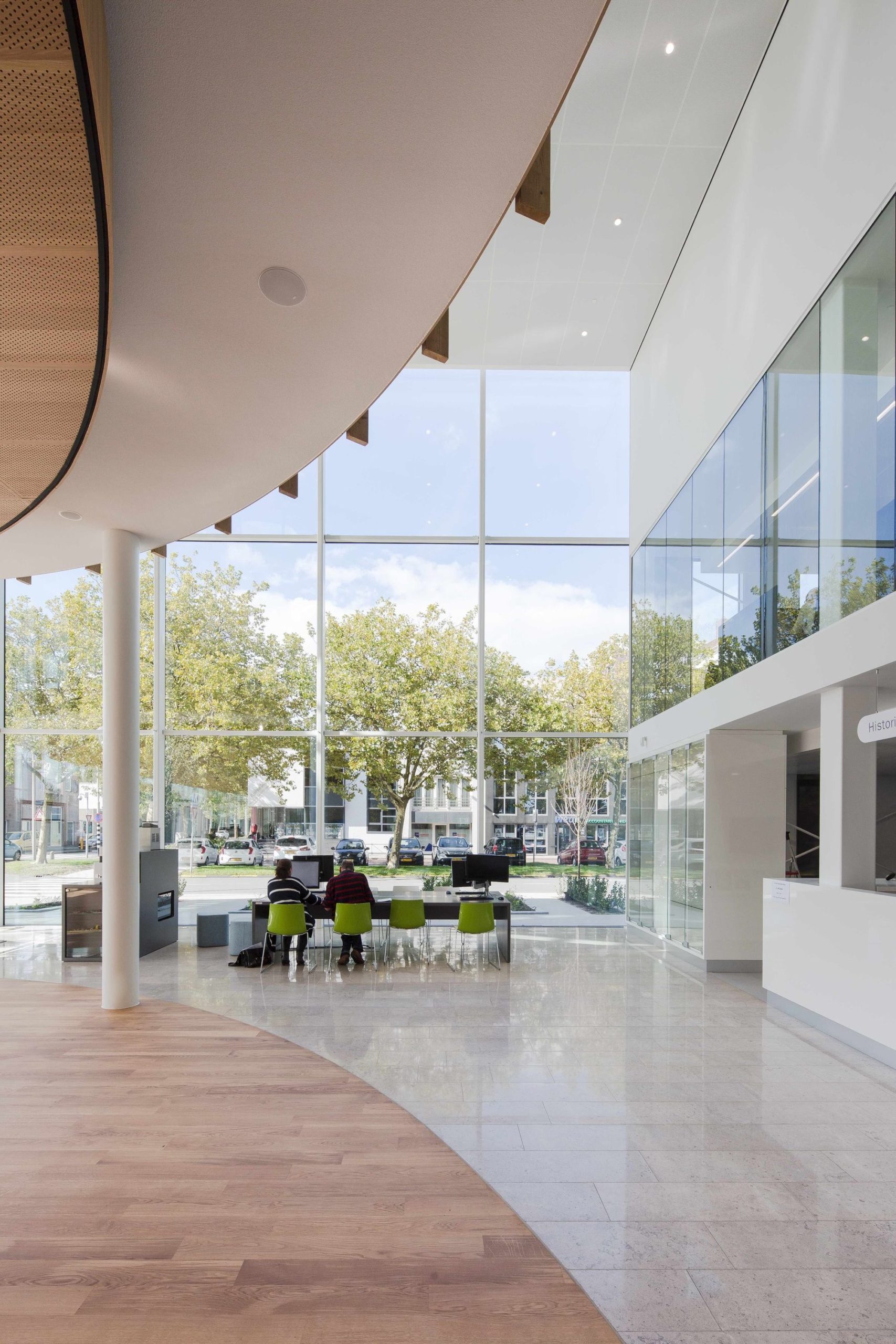 The exterior of the municipal office at the Laan van de Glazen Stad has a matter-of-fact appearance; the interior is spacious, inviting and representative. The building consists of two generic office bays with a high, luminous and green atrium in between them. Among others things, the atrium comprises the reception and restaurant. It has a strong visual relation with the entrance square.