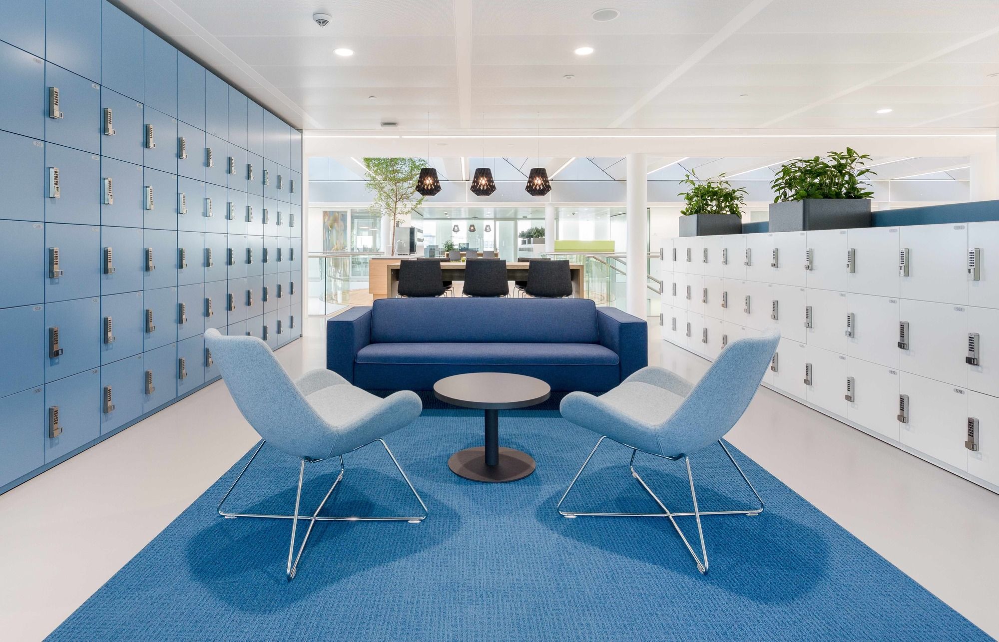 The municipal office has an overall appearance that is both professional and attractive. As in the public and administrative center, the colors used for the interior elements stem from the colors in the Westland logo. As an identity-enhancing element, wall-wide photo prints with typical scenes from the Westland life are used in a variety of spaces.