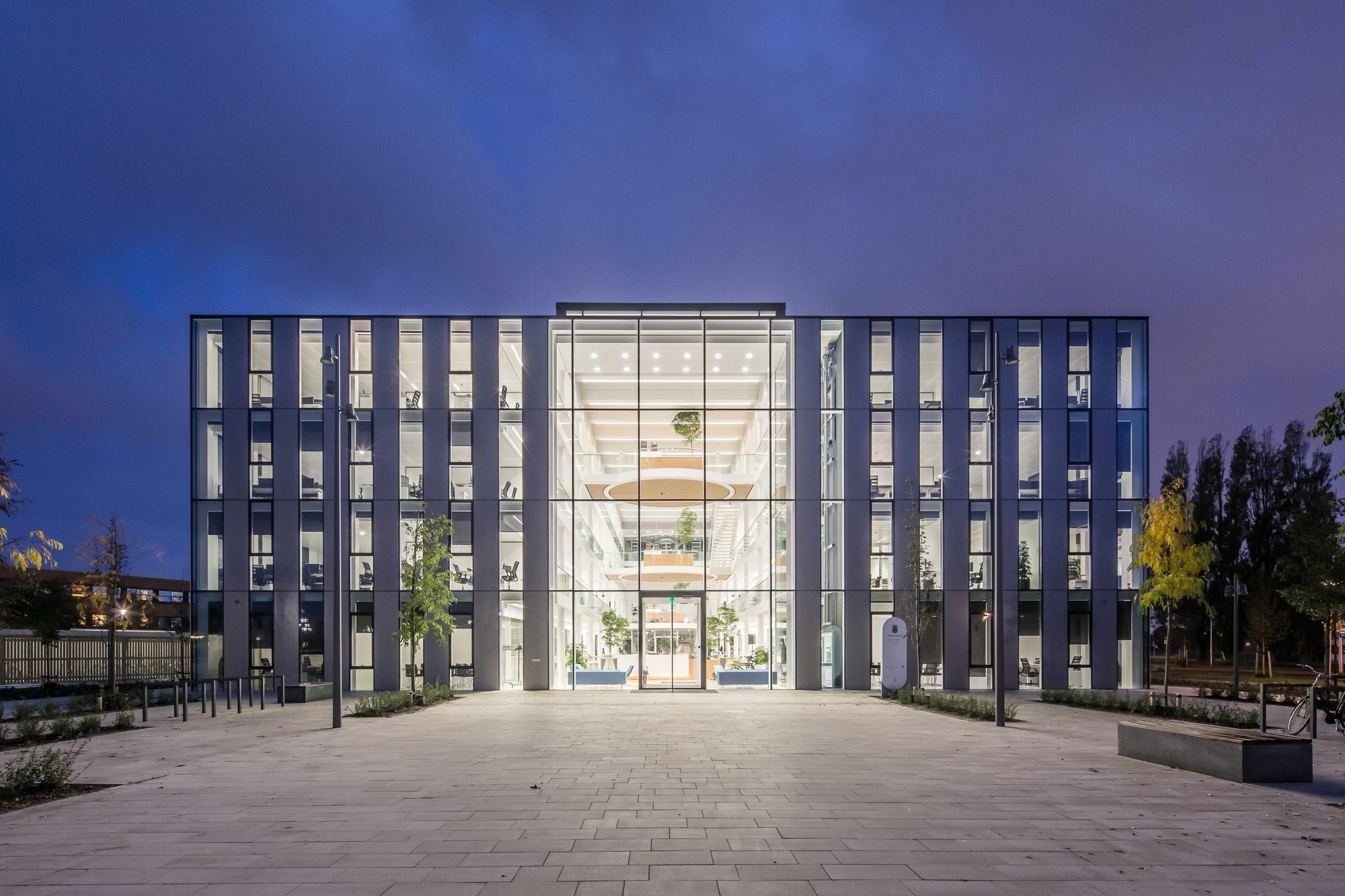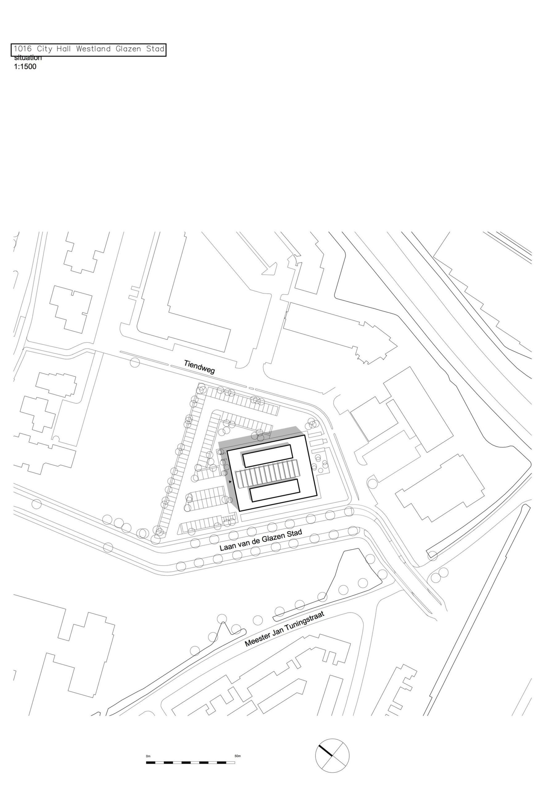 The new municipality office houses the majority of the municipal staff and is located at the Laan van de Glazen Stad (Lane of the Glass City). The new edifices were jointly realized within the framework of a Design Build Finance Maintain and Operate-assignment that was granted to the Groene Schakel (Green Link) consortium, which consists of Boele en Van Eesteren, Homij Technische Installaties, the PHC Dienstengroep and Kondor Wessels Projecten. The architecture and interior were designed by cepezed and cepezed interior.