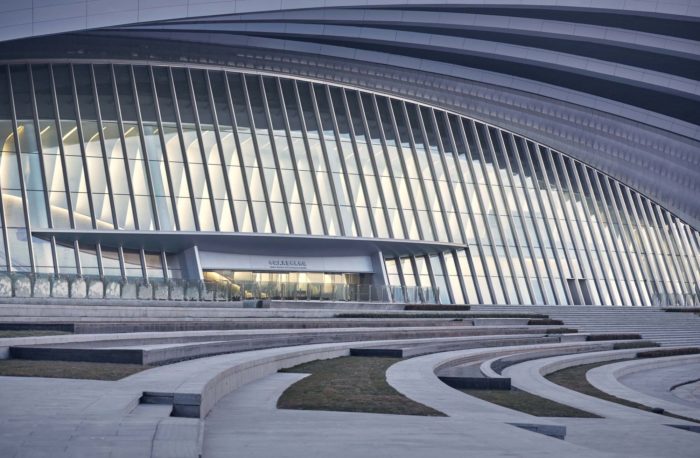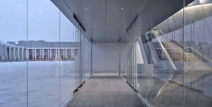 Drawing Inspiration from Nature: The roof design originates from the original building’s corner, following the arc line’s tangent direction to create a harmonious contour. A gradient technique is applied to craft a roof shape with a rhythmic and cohesive appearance. Additionally, the silver-white linear elements pay homage to the red-crowned crane, a protected species in Yancheng Wetland, reflecting the beauty of nature in architectural aesthetics.