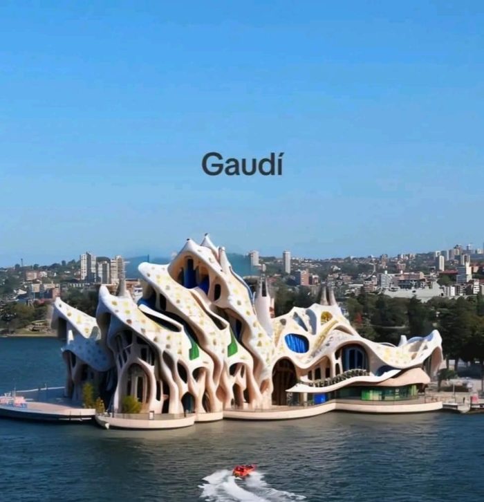 Gaudi’s interpretation of the Sydney Opera House would be a whimsical, surreal masterpiece reminiscent of his famous Sagrada Família in Barcelona.