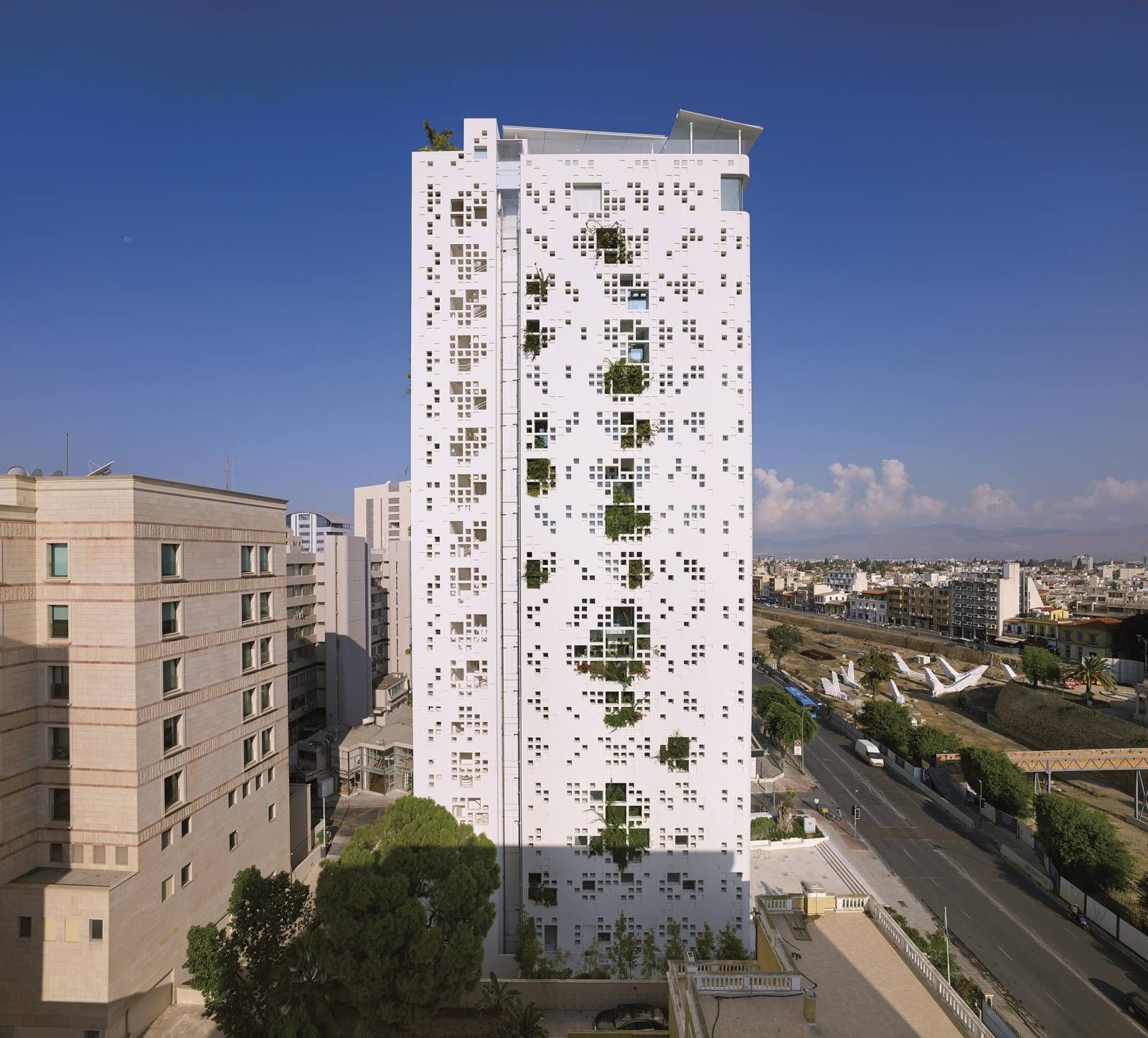 The iconic tower designed by Jean Nouvel at the center of Nicosia, next to Eleftheria Square transforms the city silhouette of Nicosia. The program includes 10- story residential apartments, a 6-story office space, and a 2-story retail area. This verticality in relation to the horizontality of the medieval walls and the moat that enclose the old part of the city sets the stage for a series of inversions that are characteristic of the building. The 67-meter high building will be the culminating landmark of the city.