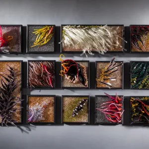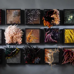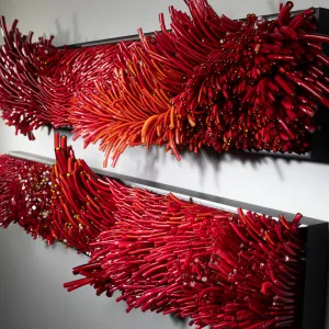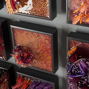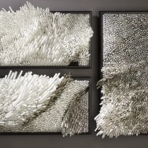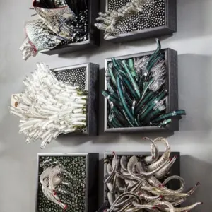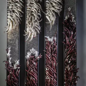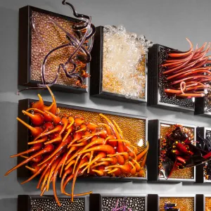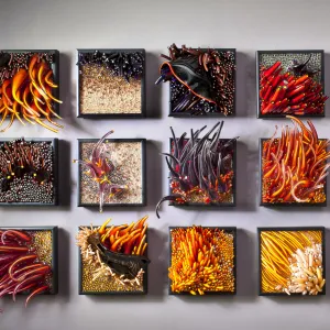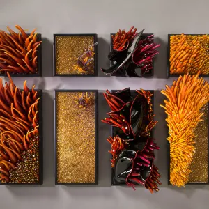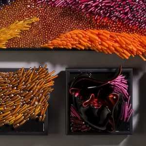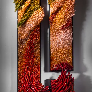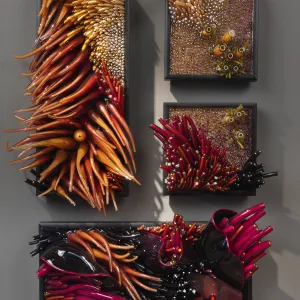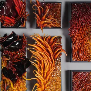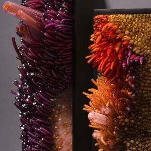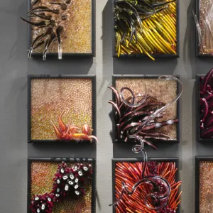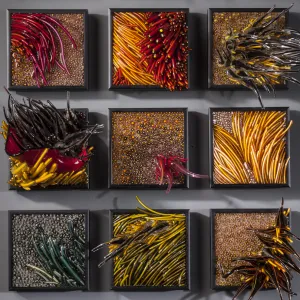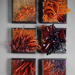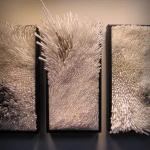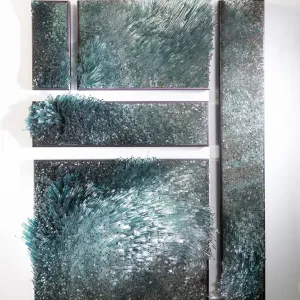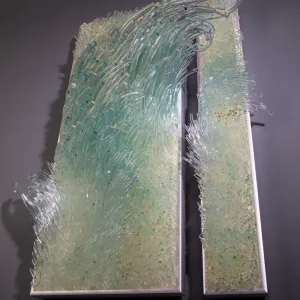 Wind and water, Shayna Leib is a Wisconsin based artist who created these unique glass sculptures in a form that seemed like they were popping out of paintings.