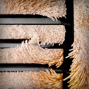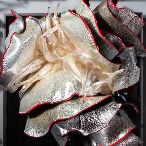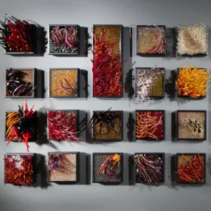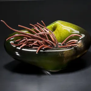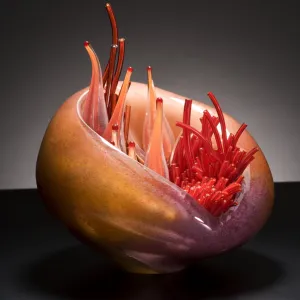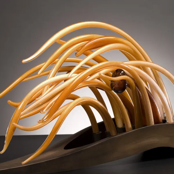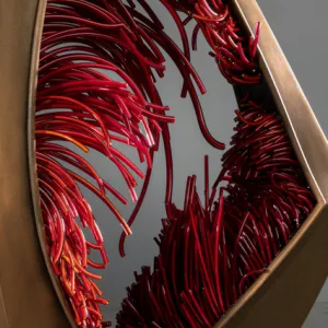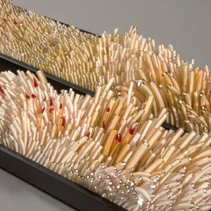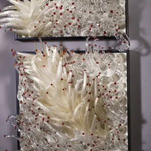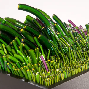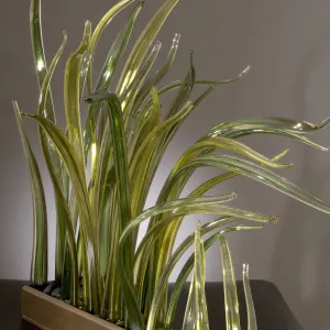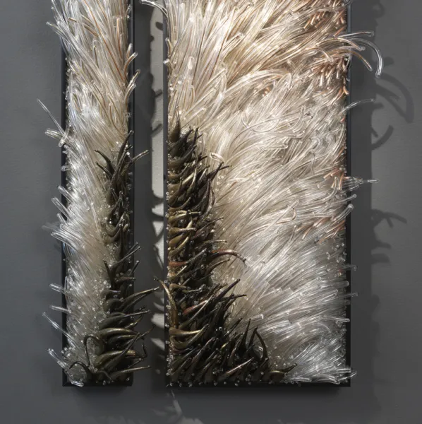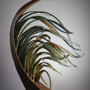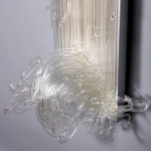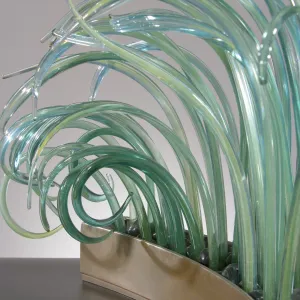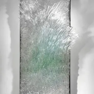 This series of glass sculpture is part of the “ Wind and Water ” series. Through the landscape of sculptural glass, Leib seeks to explore the powerful elements of Earth – Wind and water – that is both nearly indiscernible to the naked eye, yet we are so innately aware of its presence and understand their intrinsic capacity to soothe and destroy, and their weave patterns that respond to our physical touch.
