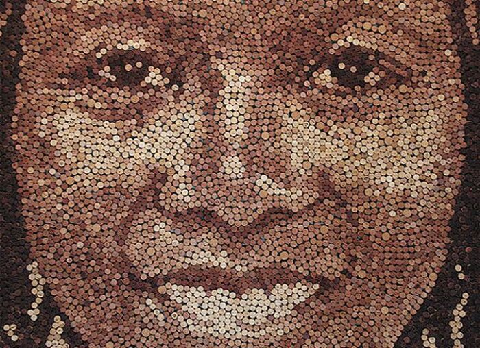Ahh, pixilation. And not just any pixels. 3,621 wine cork pixels; meaning this work of art and illustration, titled Trisha, by Scott Gundersen was probably fun to make and probably even more fun to prepare for. A drawing was created from a photograph. Following this, the artist pierced the image with 6,134 nails and fixed, as stated above- 3,621 recycled wine corks to the image based on tonality. The gradation of tones was achieved through the various levels of wine-staining on the inside of the corks, while the whites were created by the flip-side of the cork, the exterior. There is a video which chronicles the creation of this work. It is almost as delightful a piece of art as the illustration itself.