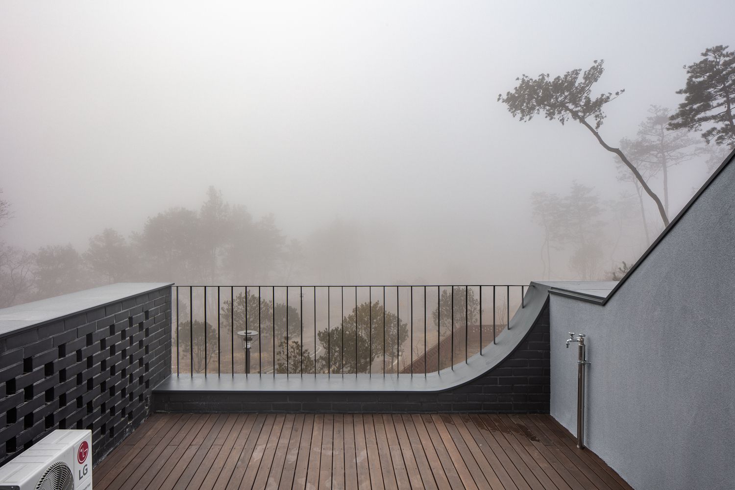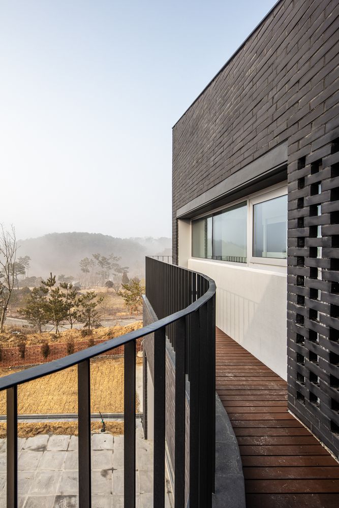 But having lived in high-rise apartment complexes most of their lives, they were highly concerned with maintaining privacy from the street and its neighbors. Therefore it was important for the house to open up to the landscape of the garden and the majestic Gyeryong mountain ranges beyond, while still shrouding the house from public view.