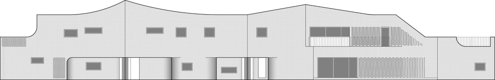 Second, the curved outer walls along the tight northern retaining wall allowed more room for circulation and light to the service areas, while the curvature of the graduating scrim brick wall to the south functioned as a sun and rain screen as well as a marker of time through its patterned shadows.